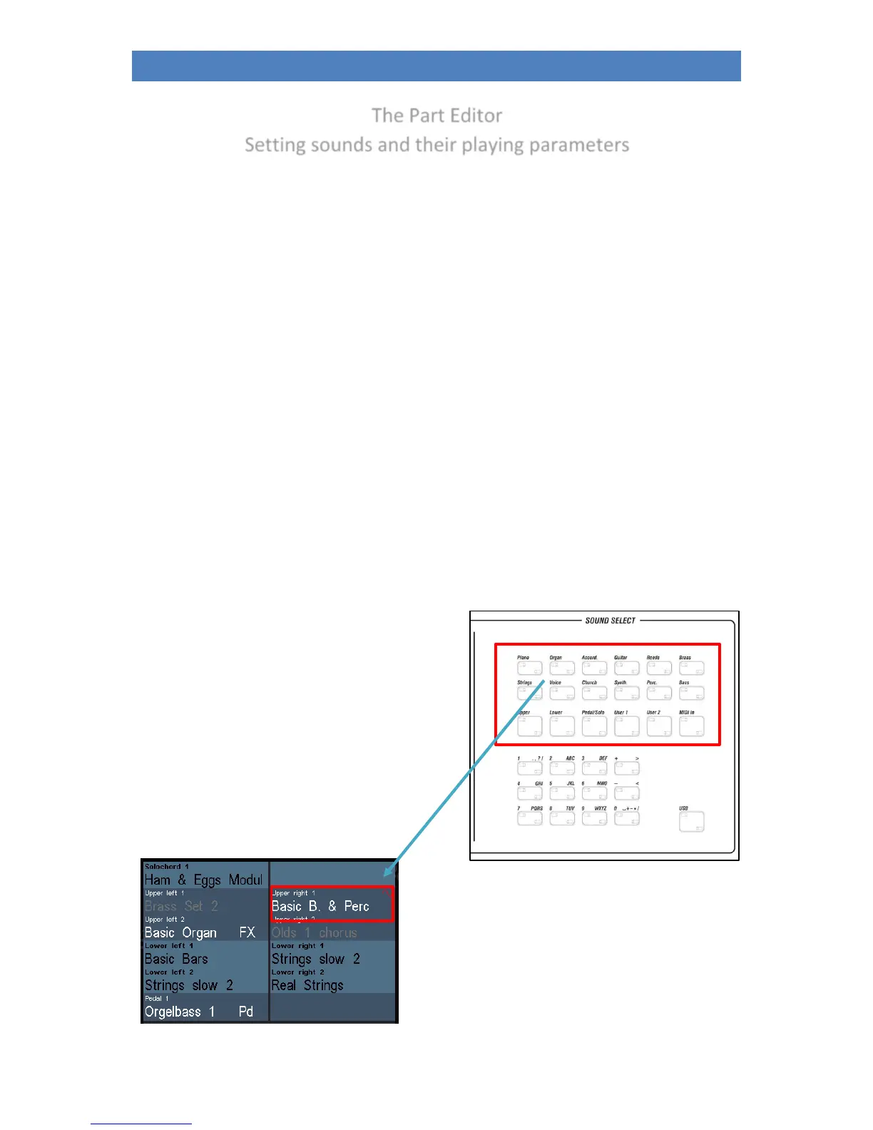 keyboard. The part contains the sound and several playing parameters. These sounds/parts can be