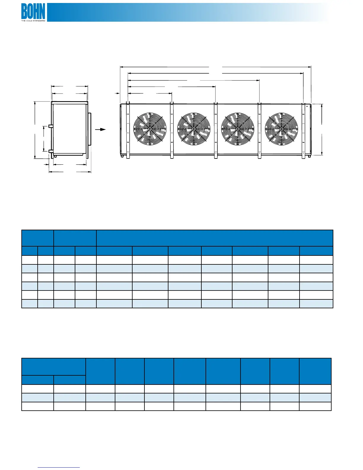 Table 16. Electric & Hot Gas Defrost Models Air Throw