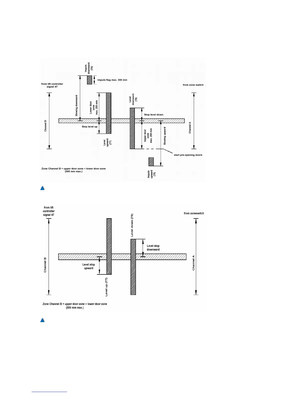 Pulse diagram related to deceleration distances in the flush-level area