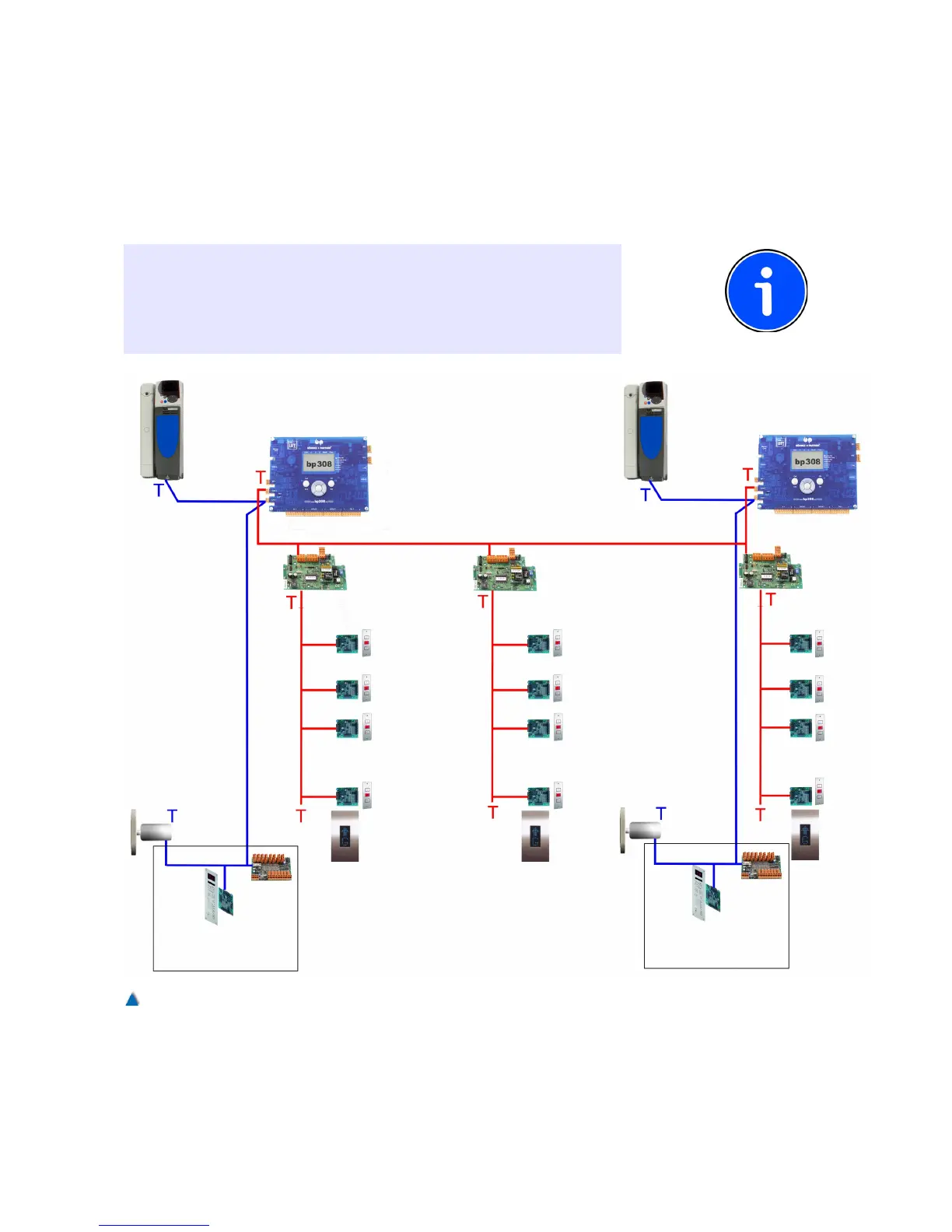On the picture you can see the topology of a bus for the landing calls