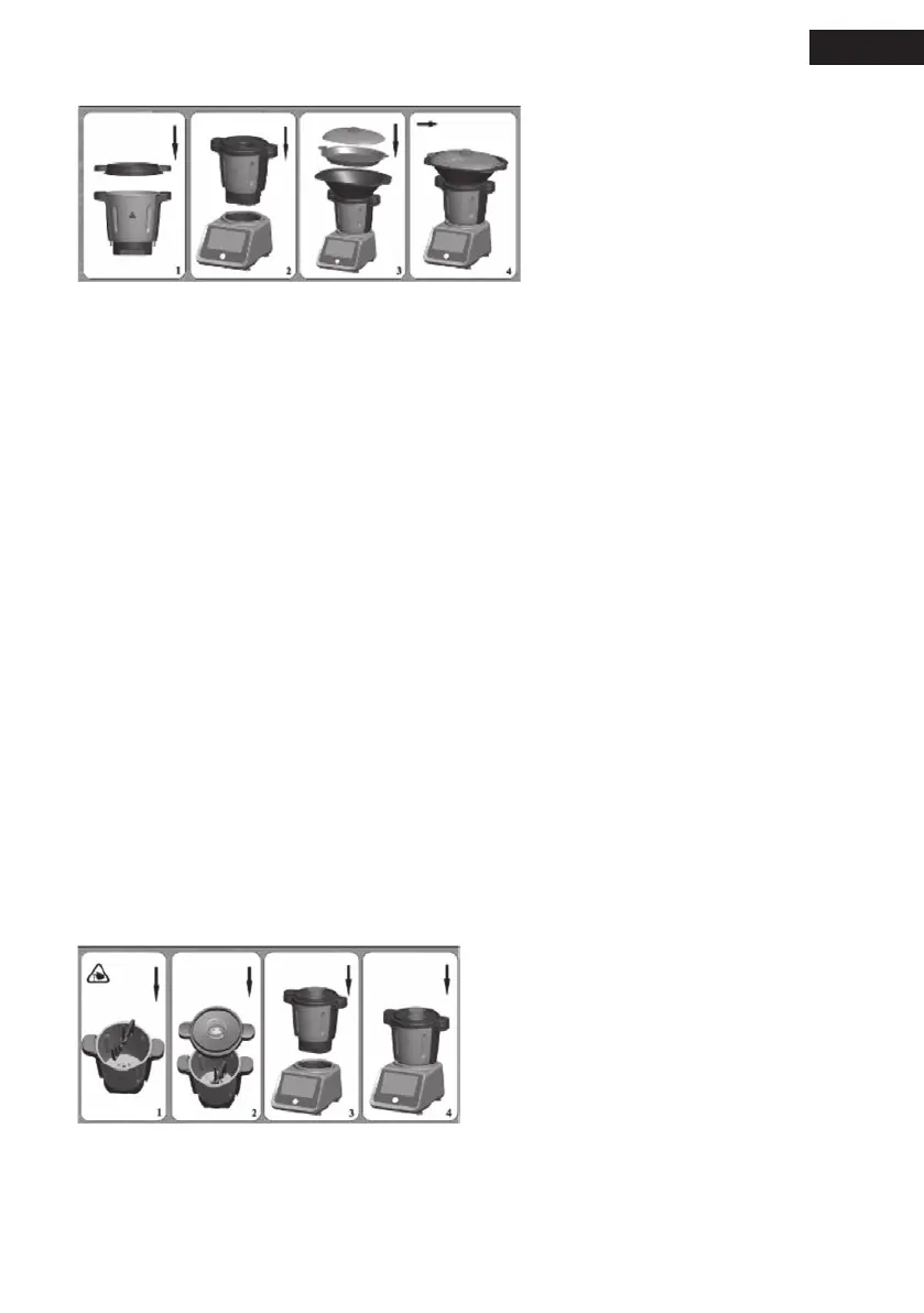 1. Instale a lâmina, e depois instale a taça no aparelho principal.