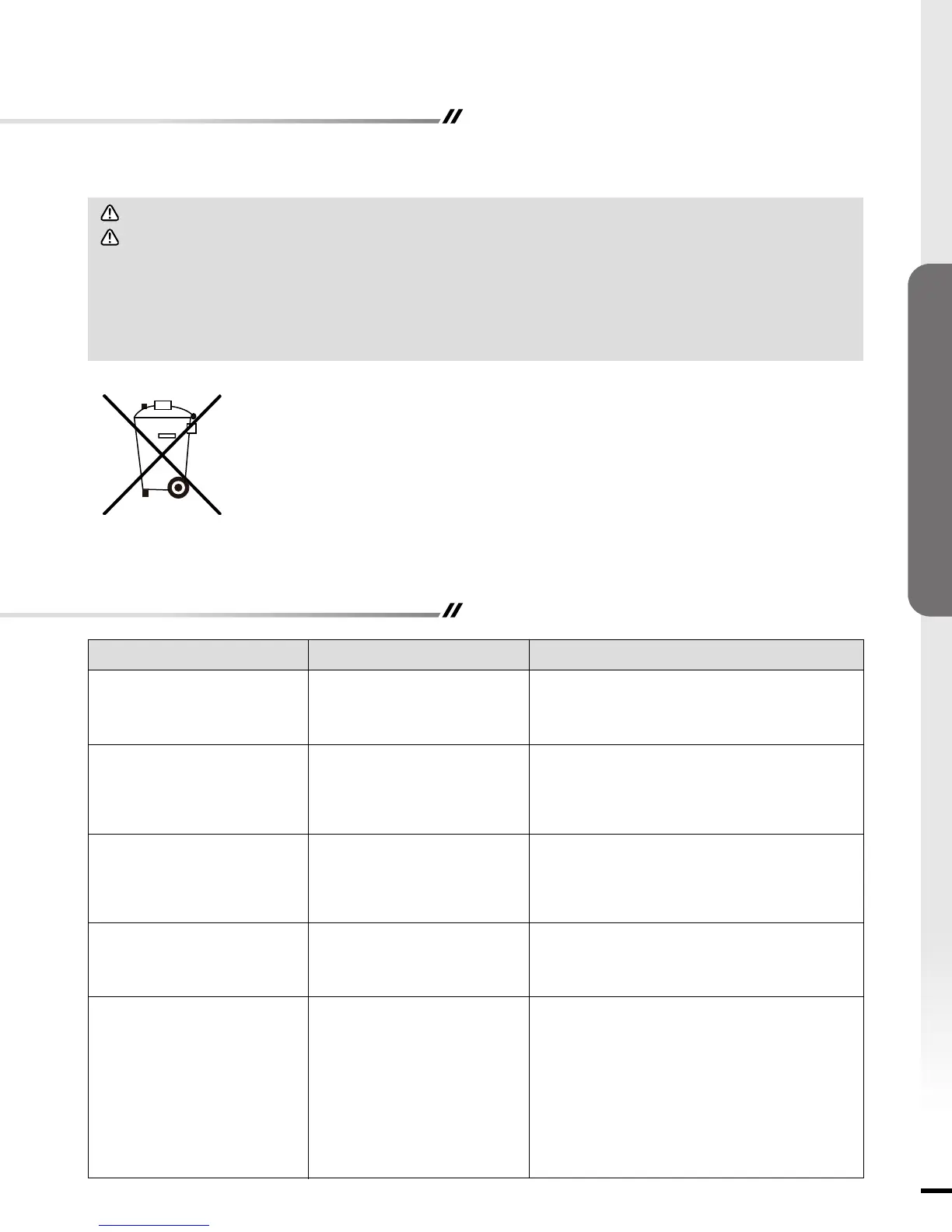 • This symbol marked on the battery and/or packaging indicates that used battery shall not be