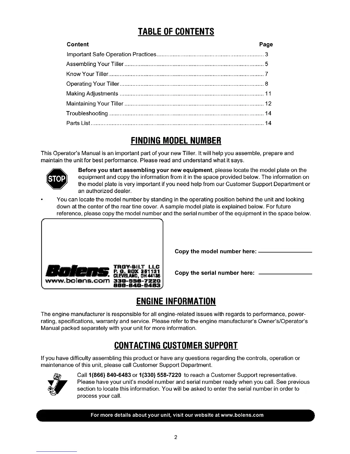 Know Your Tiller ................................................................................................. 7