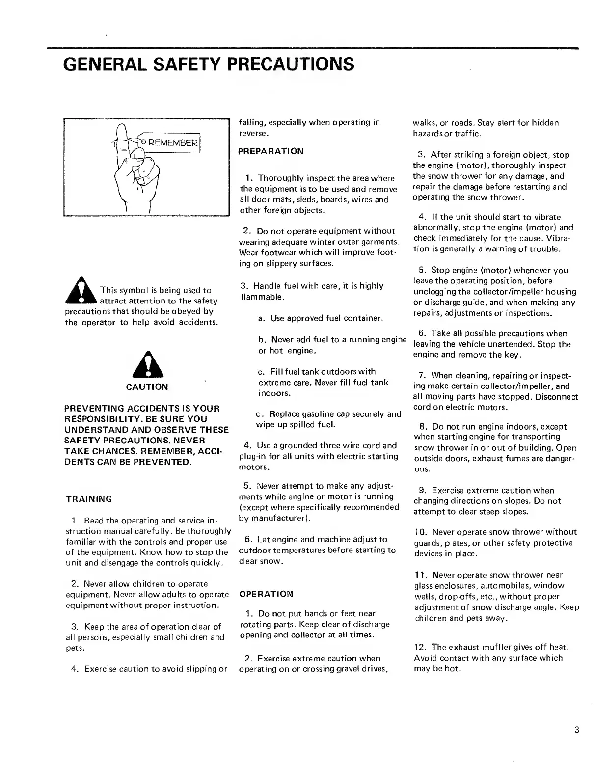 Bolens 500E - General Safety Precautions; Operator Training; Preparation for Use; Operational Safety