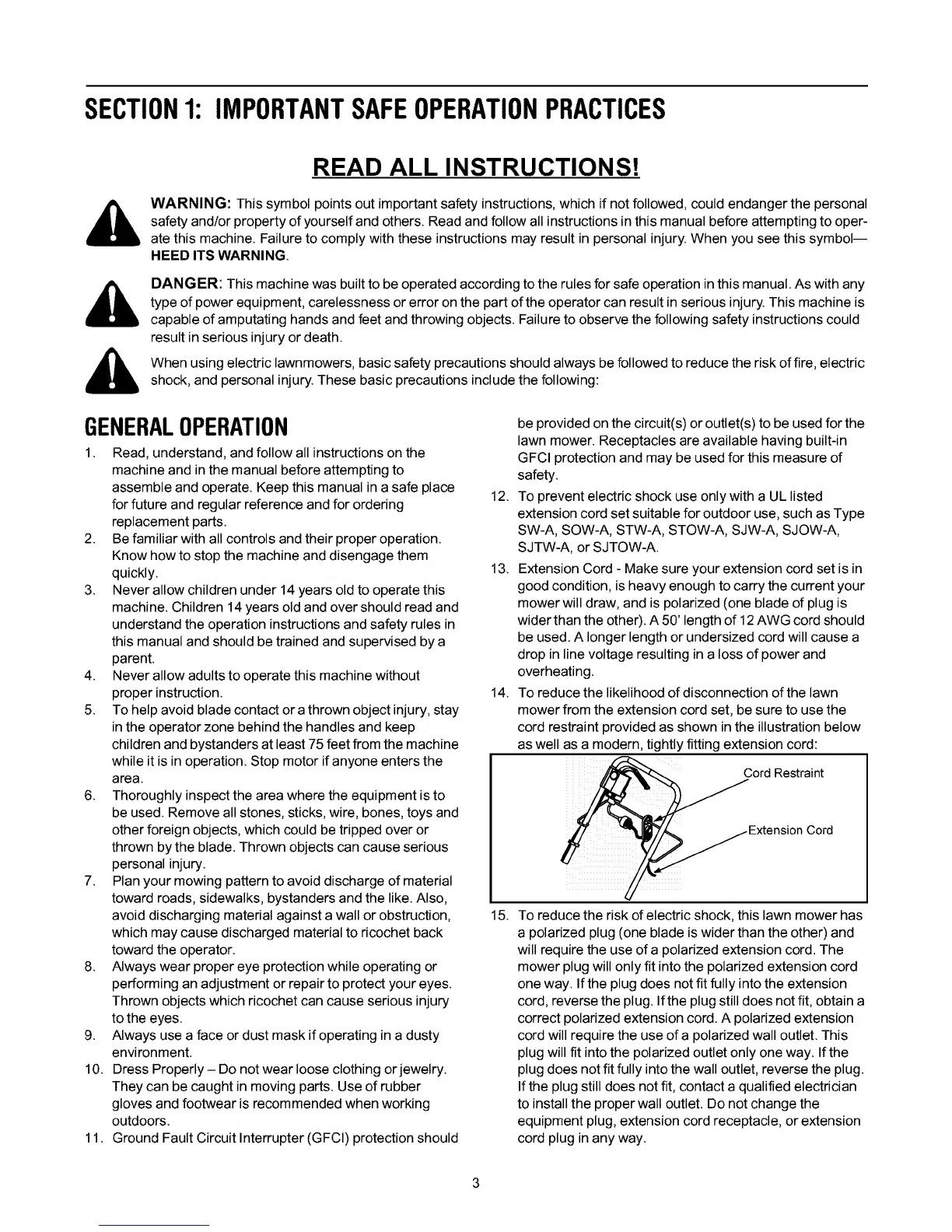 mower from the extension cord set, be sure to use the
