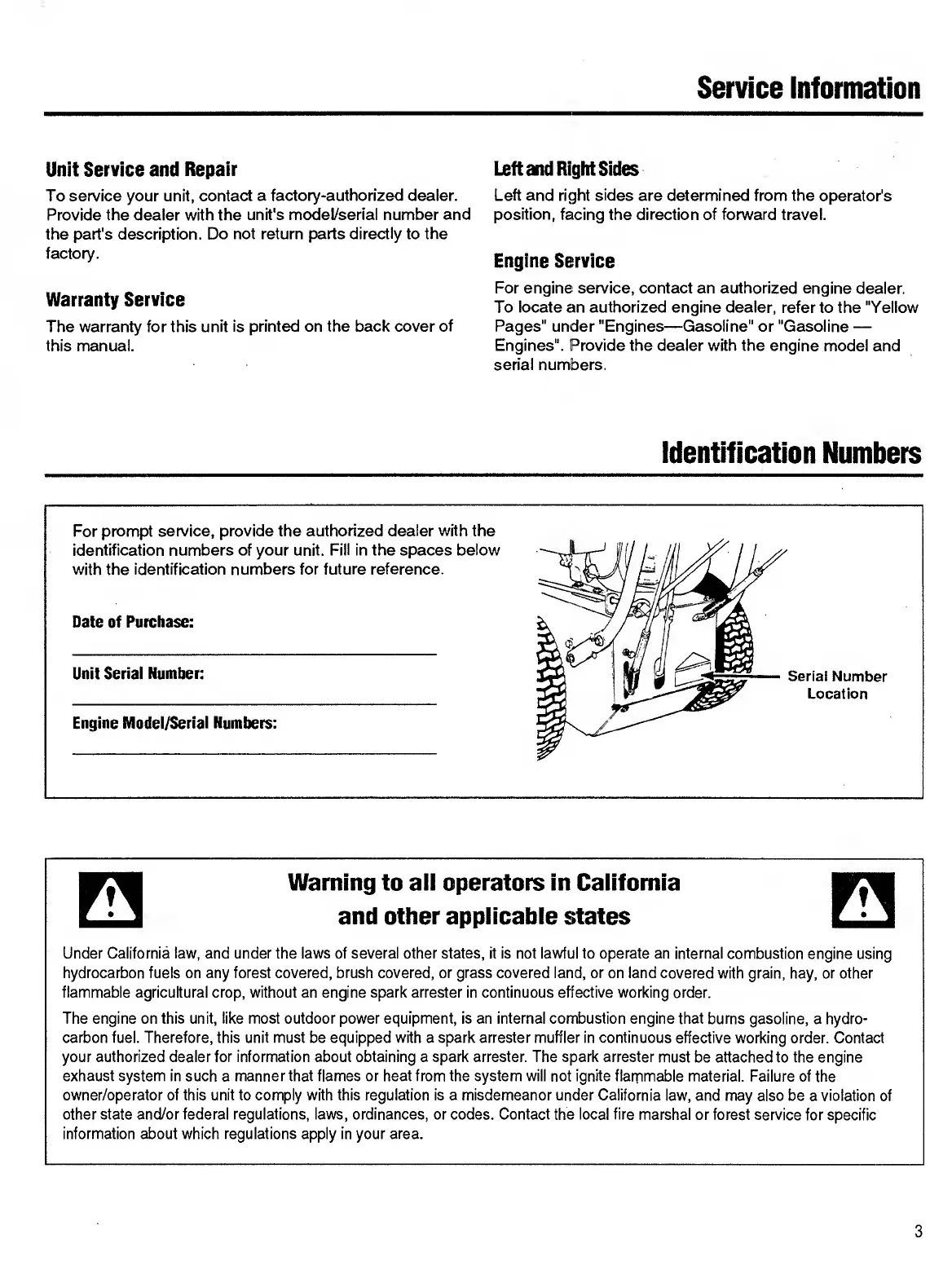 Bolens 824A - Service Information; Unit Service and Repair; Warranty Service; Left and Right Sides
