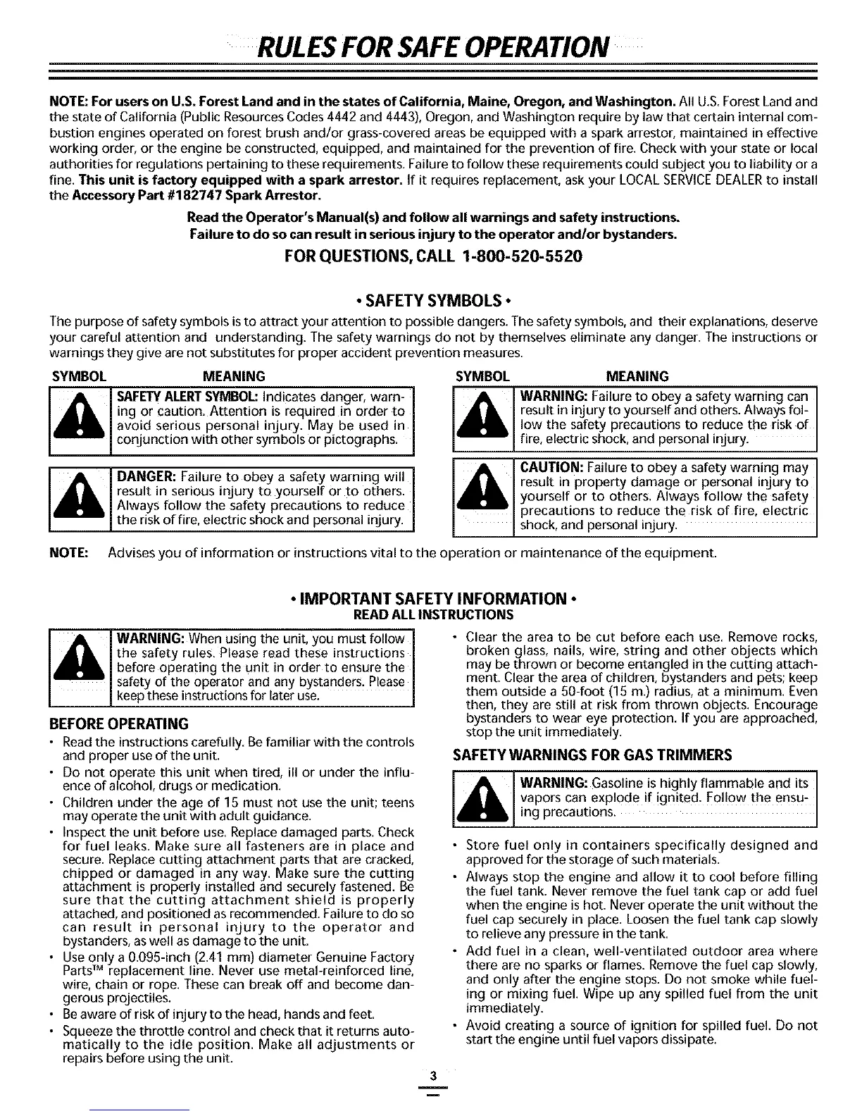 fine. This unit is factory equipped with a spark arrestor. If it requires replacement, ask your LOCAL SERVICE DEALER to install