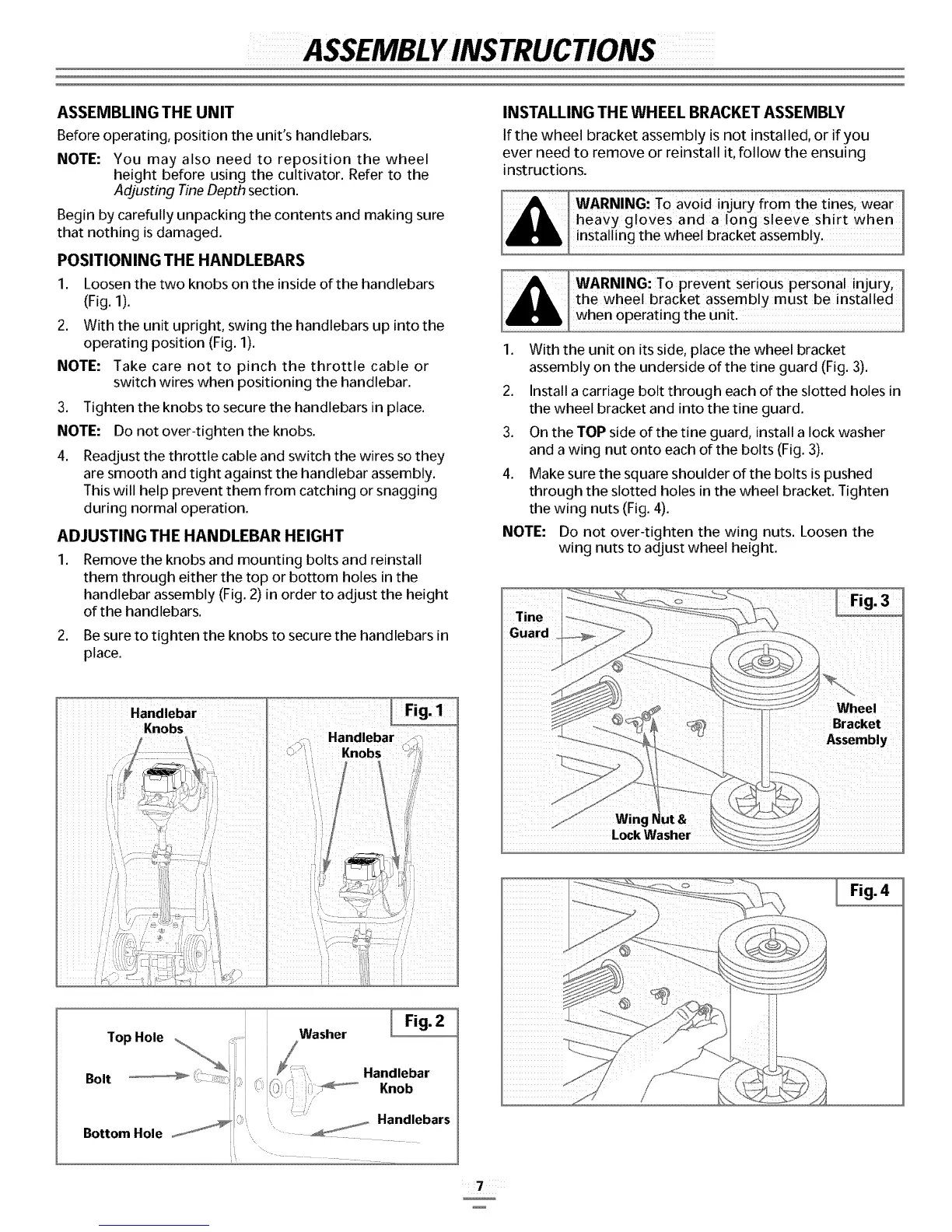 NOTE." Do not over-tighten the wing nuts. Loosen the