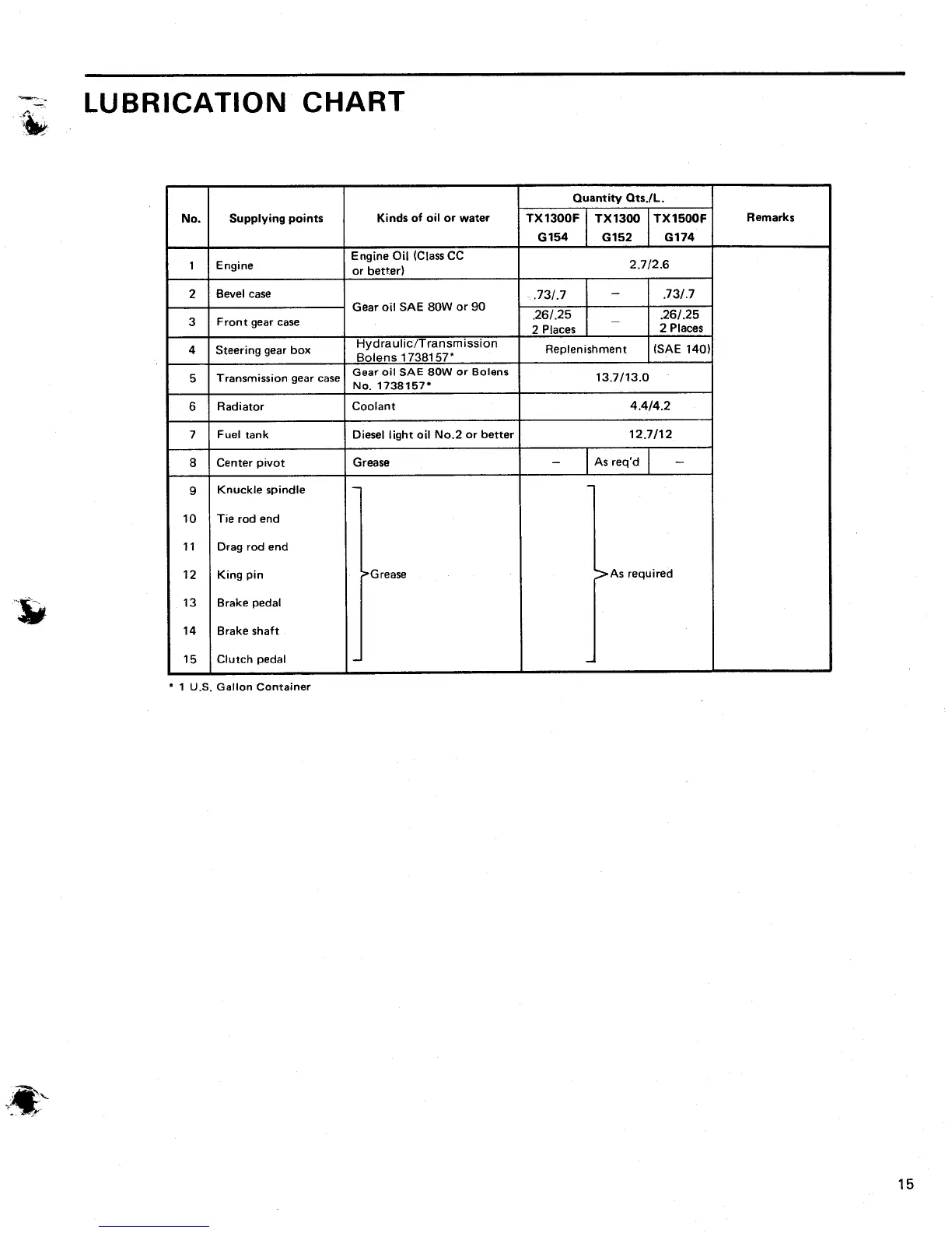 Bolens TX1502 - Lubrication Chart