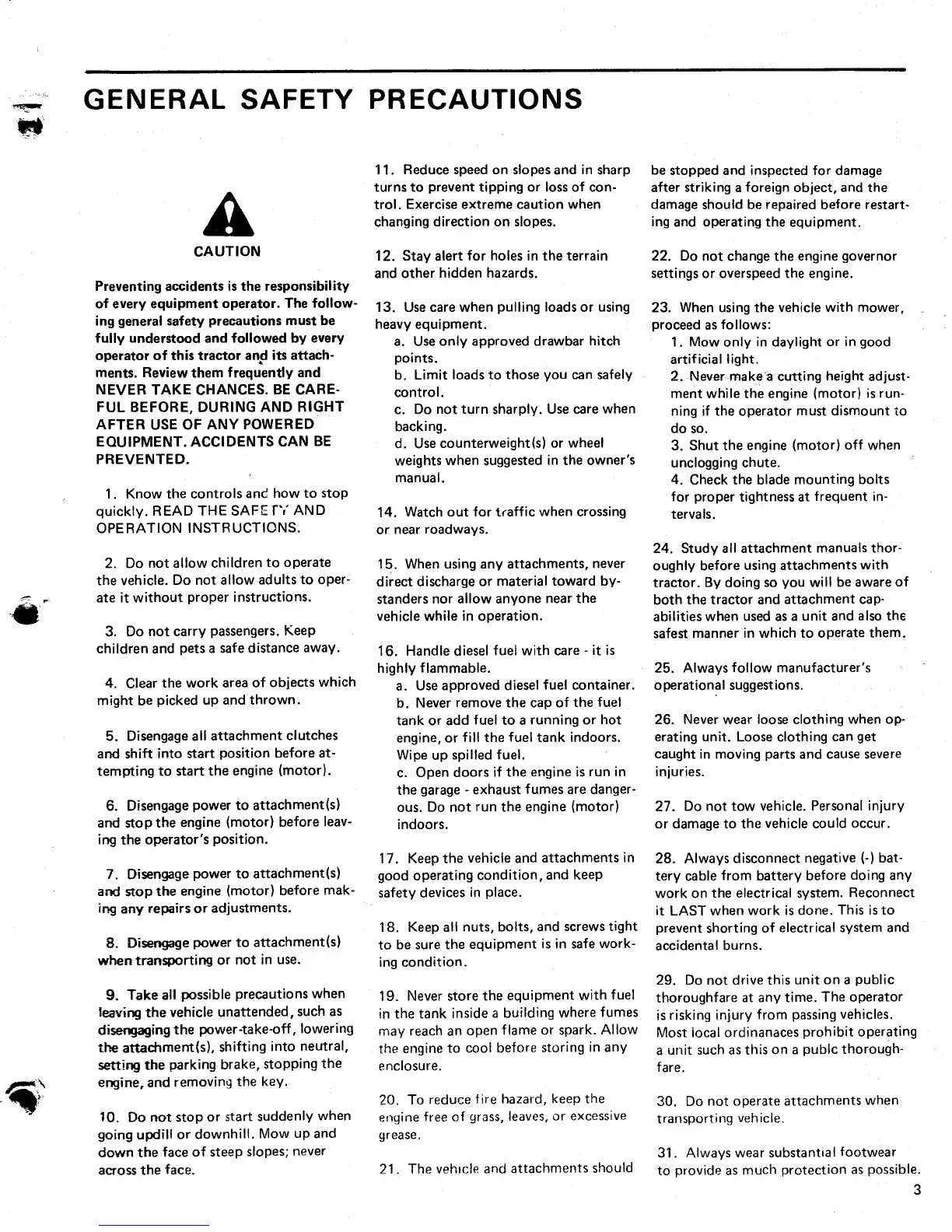 Bolens TX1502 - General Safety Precautions