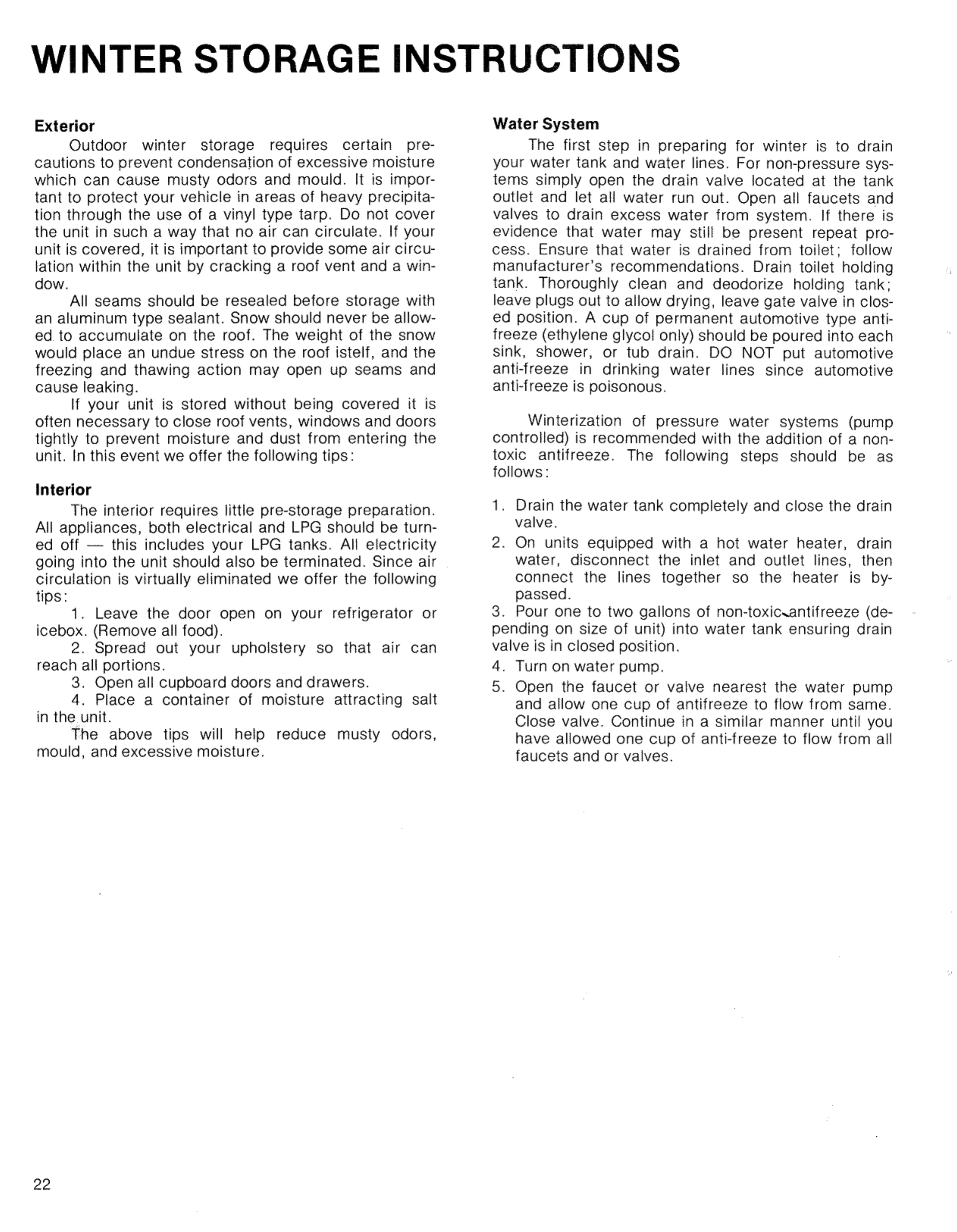 Boler B-1300S - WINTER STORAGE INSTRUCTIONS; Exterior; Water System