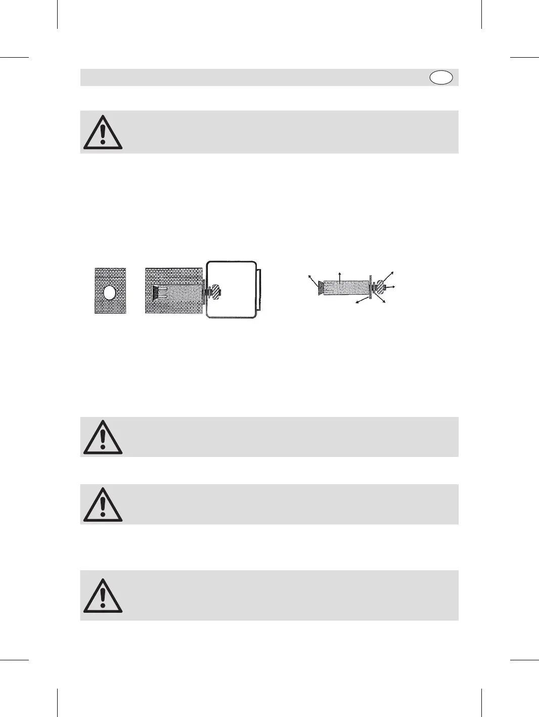 3. Insira 1 bucha com parafuso em cada orifício da parede ou do chão - ver o esquema
