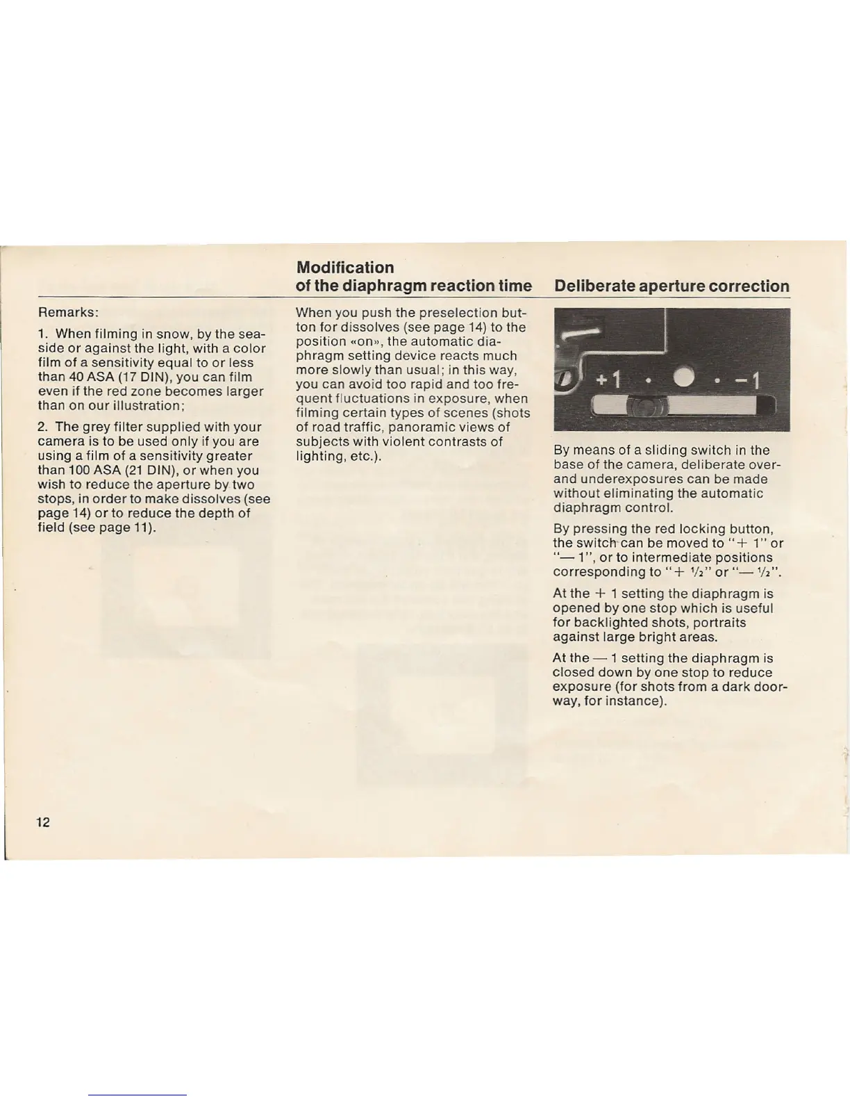 of the diaphragm reaction time Deliberate aperture correction