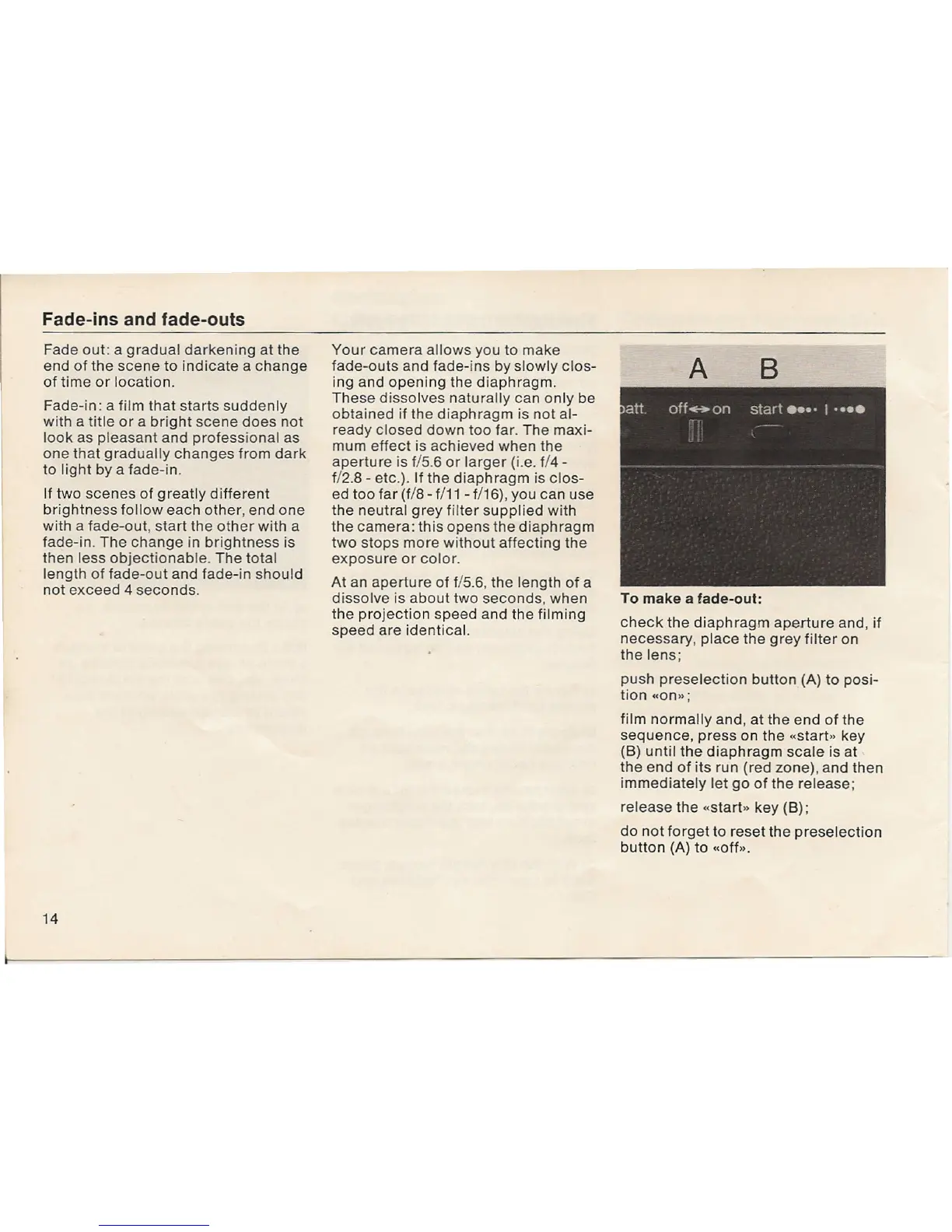 fade-outs and fade-ins by slowly clos-