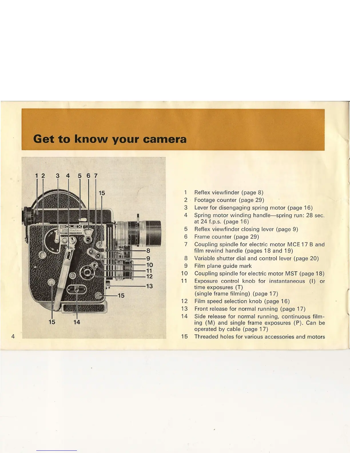 12 Film speed selection knob (page 16)