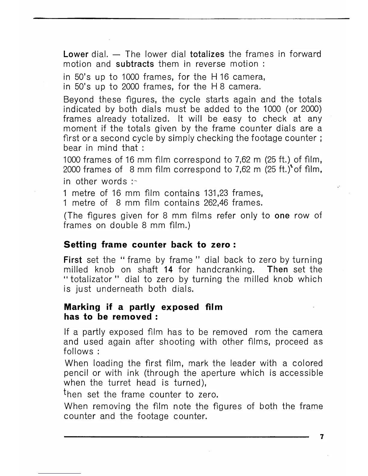 Lower dial. — The lower dial totalizes the frames in forward