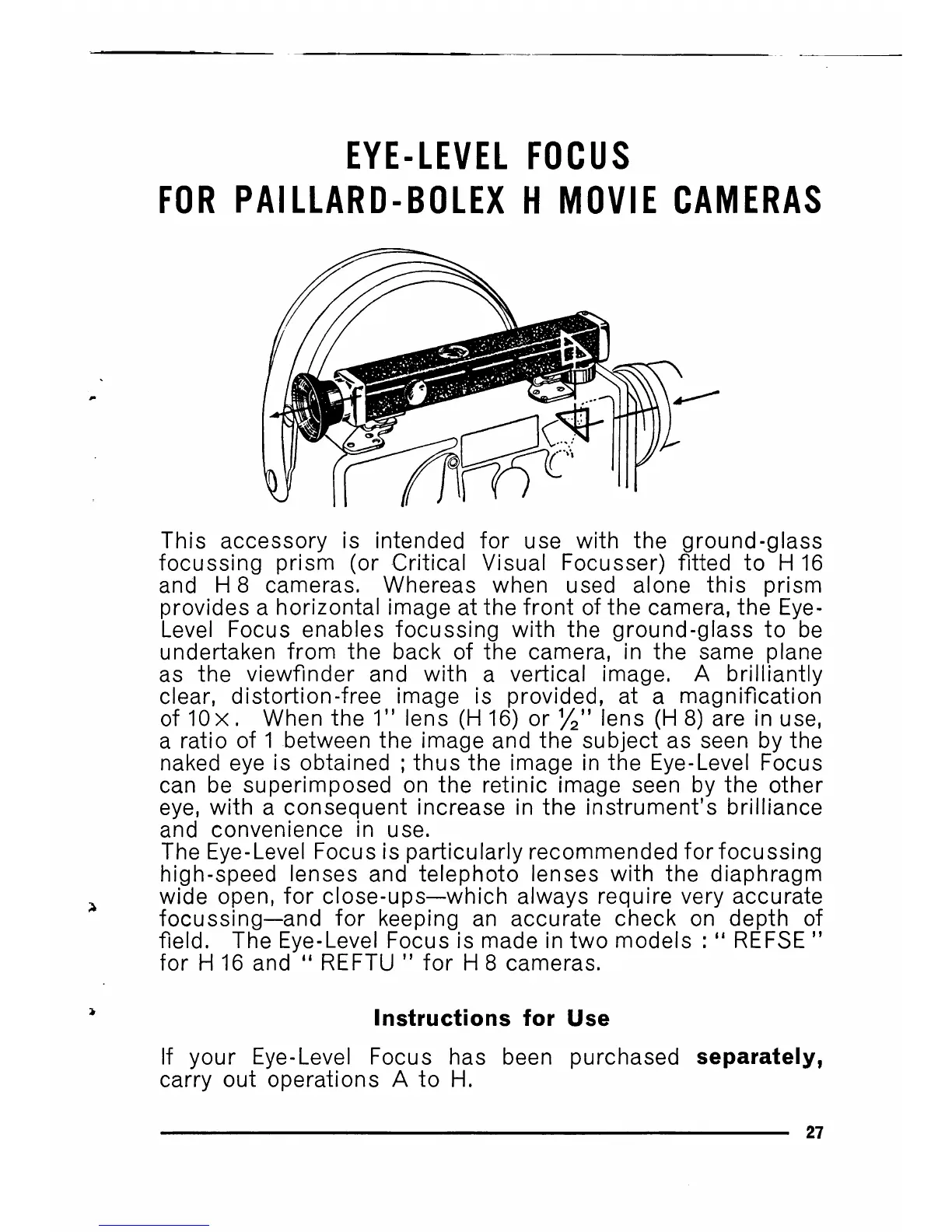 focussing prism (or Critical Visual Focusser) fitted to H 16