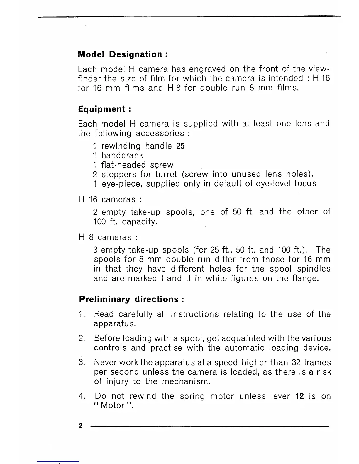 3. Never work the apparatus at a speed higher than 32 frames