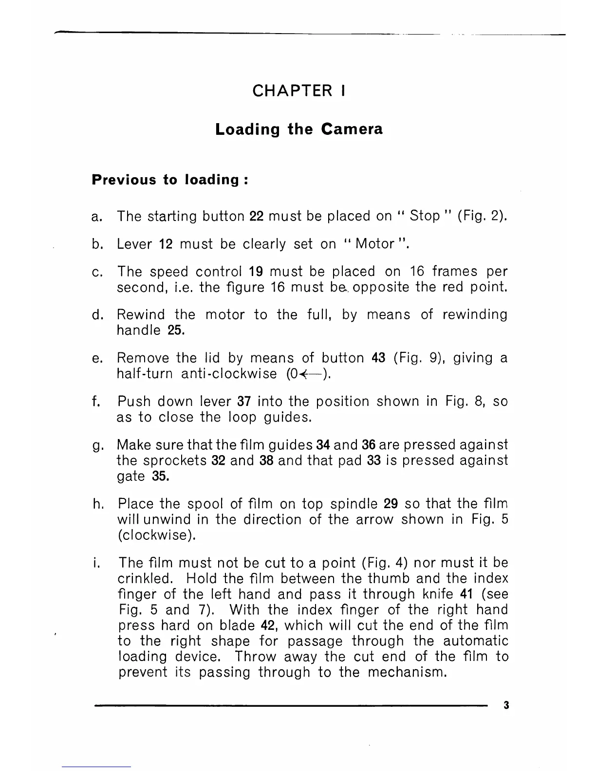 e. Remove the lid by means of button 43 (Fig. 9), giving a