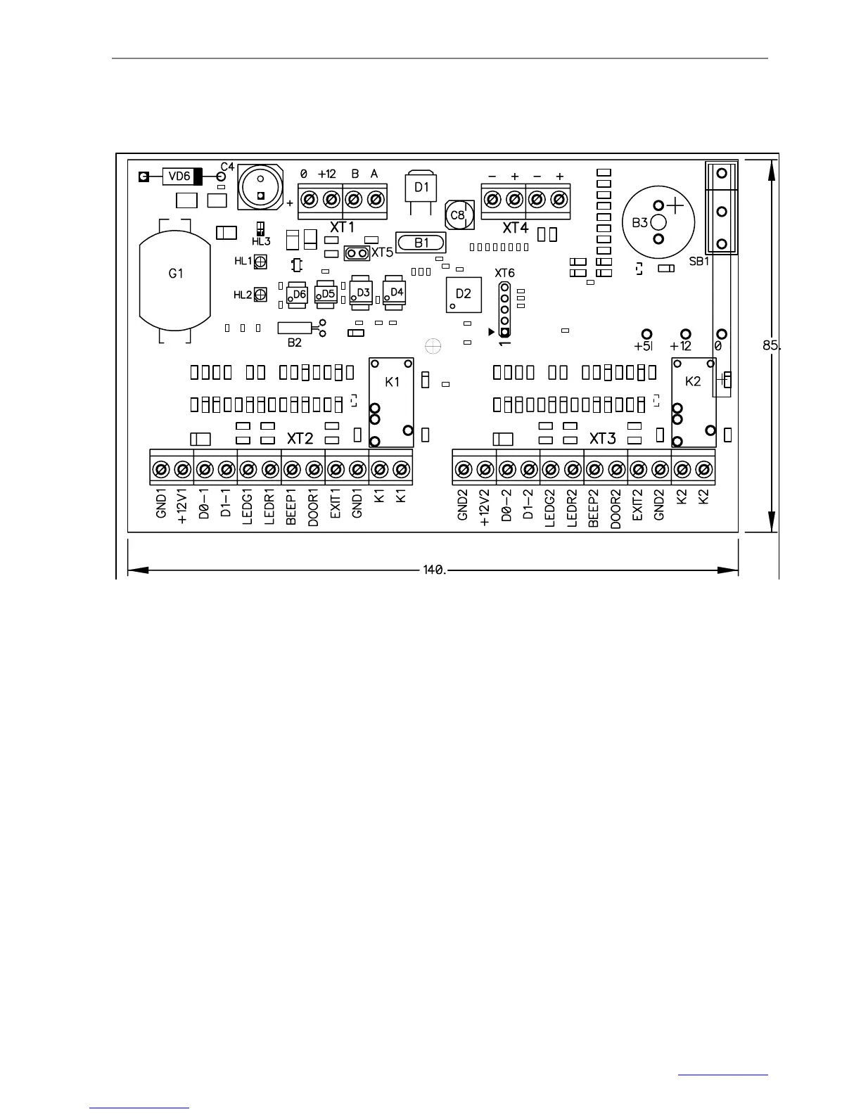 The layout of the S2000-2 access controller PCB is shown in Figure 3.