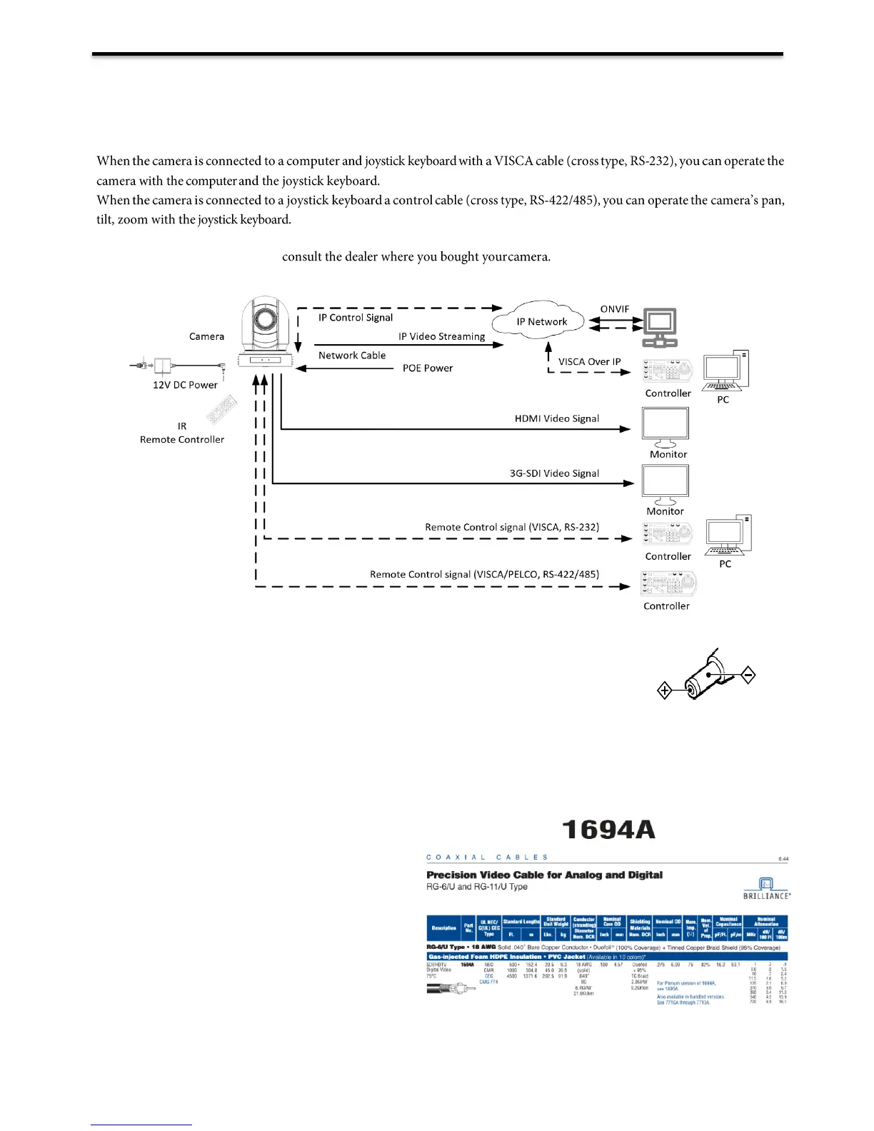 In this connection configuration, HDMI cable, SDI video cable, data cable, Network cable is required. To obtain these third-