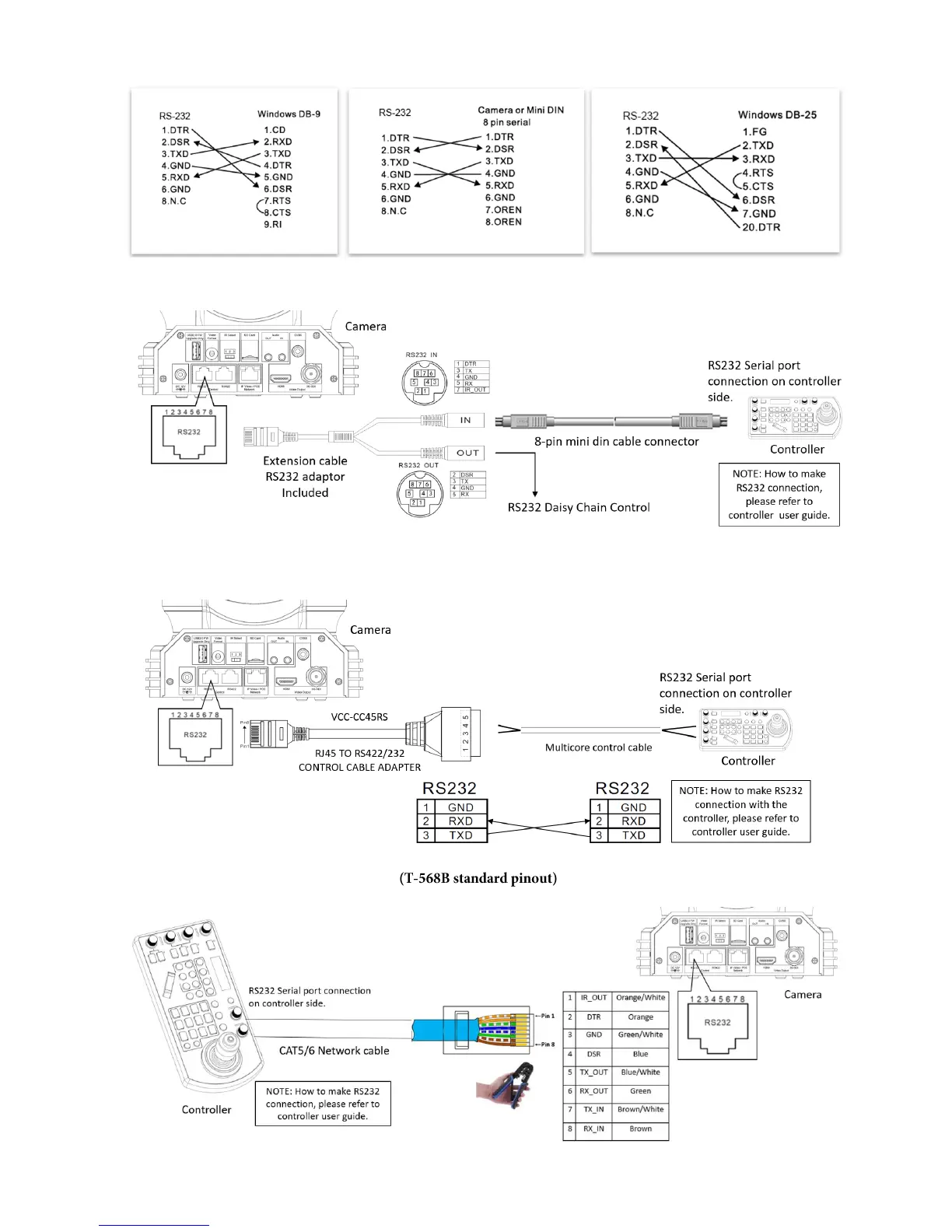 9. Use extension cables included RJ45 to RS232 8 pin Mini Din adaptor to make RS232 connection for your control device.