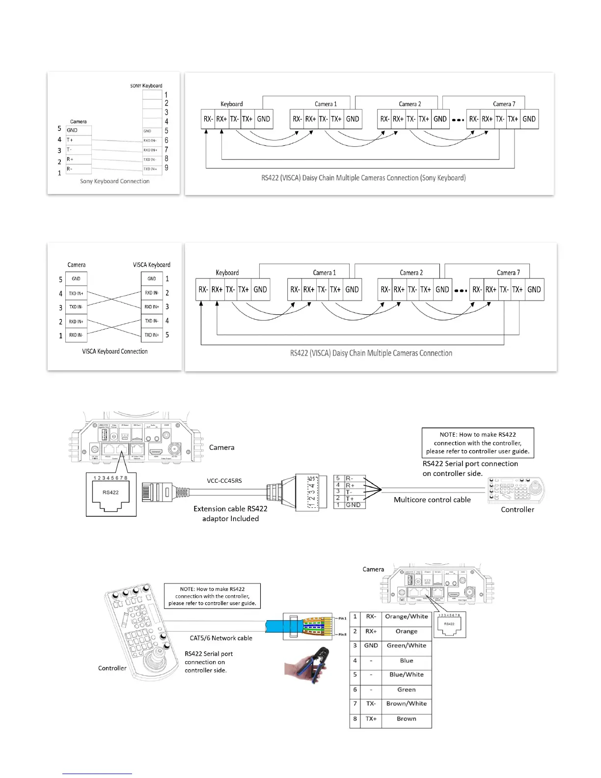 10. How to make RS422 connection and RS422 Daisy Chain multiple cameras connection with Non-Sony controller as below: