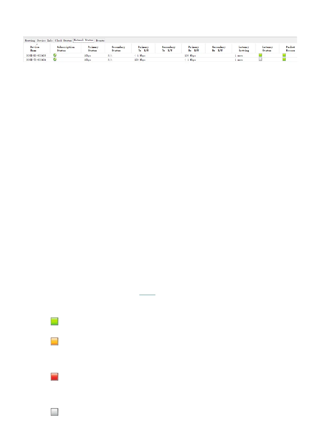 • Packet Errors: A red light in the Packet Errors column indicates that one or more media packets have