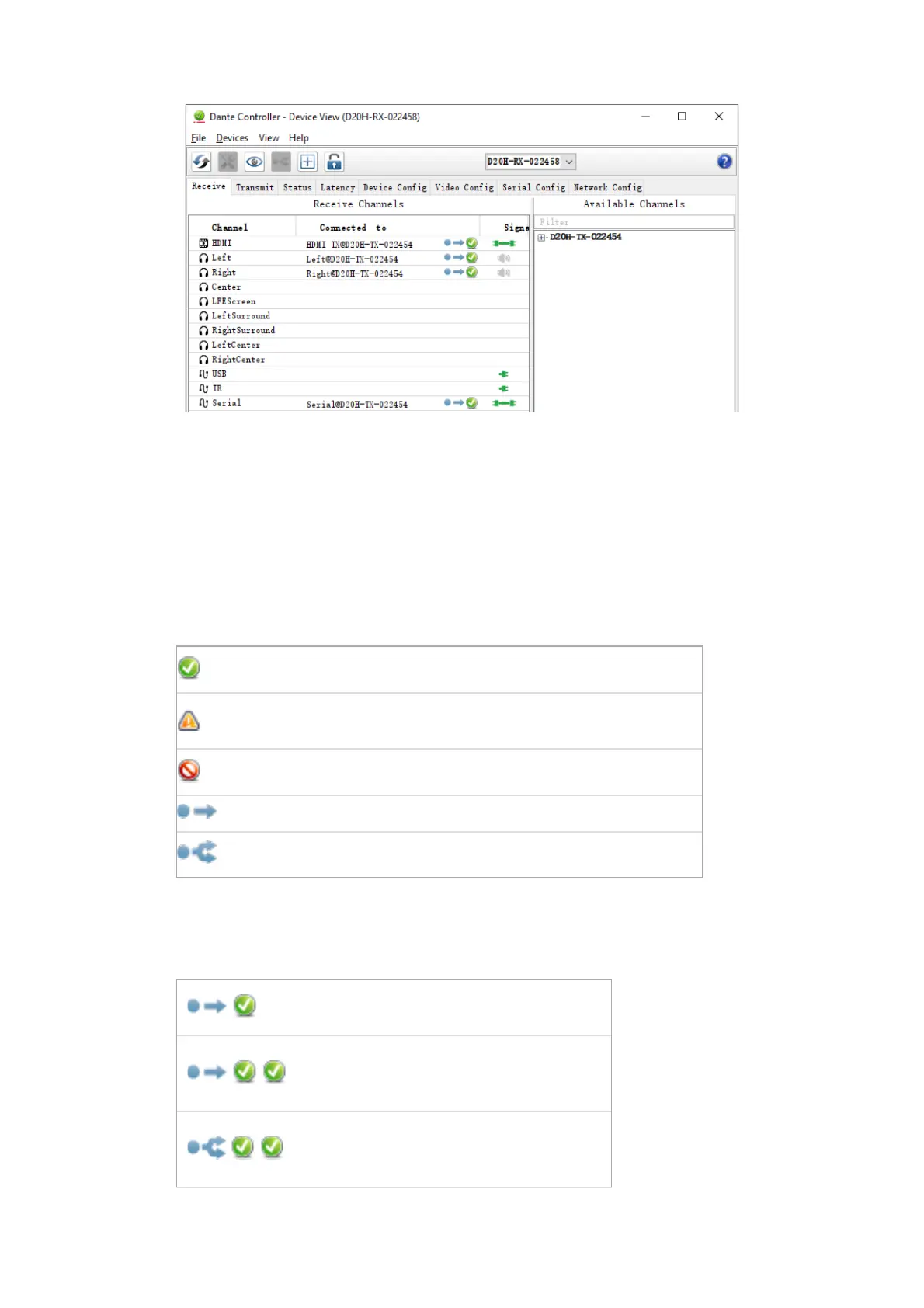 Channel: Lists the receive channel names for the current device. These can be edited here to