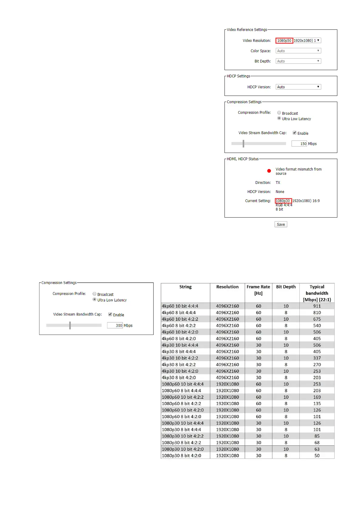• Video Resolution: For the Bolin Dante AV encoder, this option is