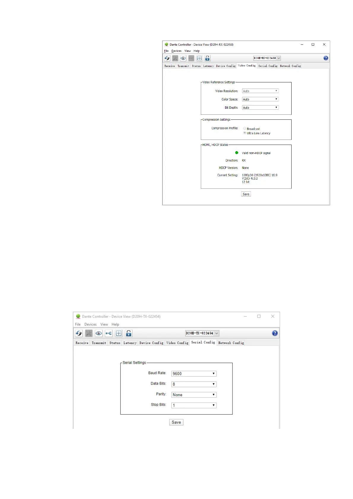 Serial Config are used to set various transmission detail to establish serial control. This is for the RS-422 port on the