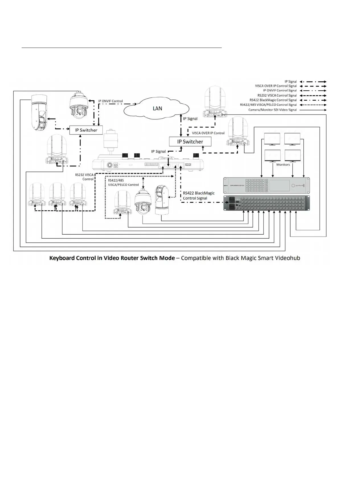 In Video Router Switch control mode, it allows you to use keyboard CAM key and MON key to select any one of the