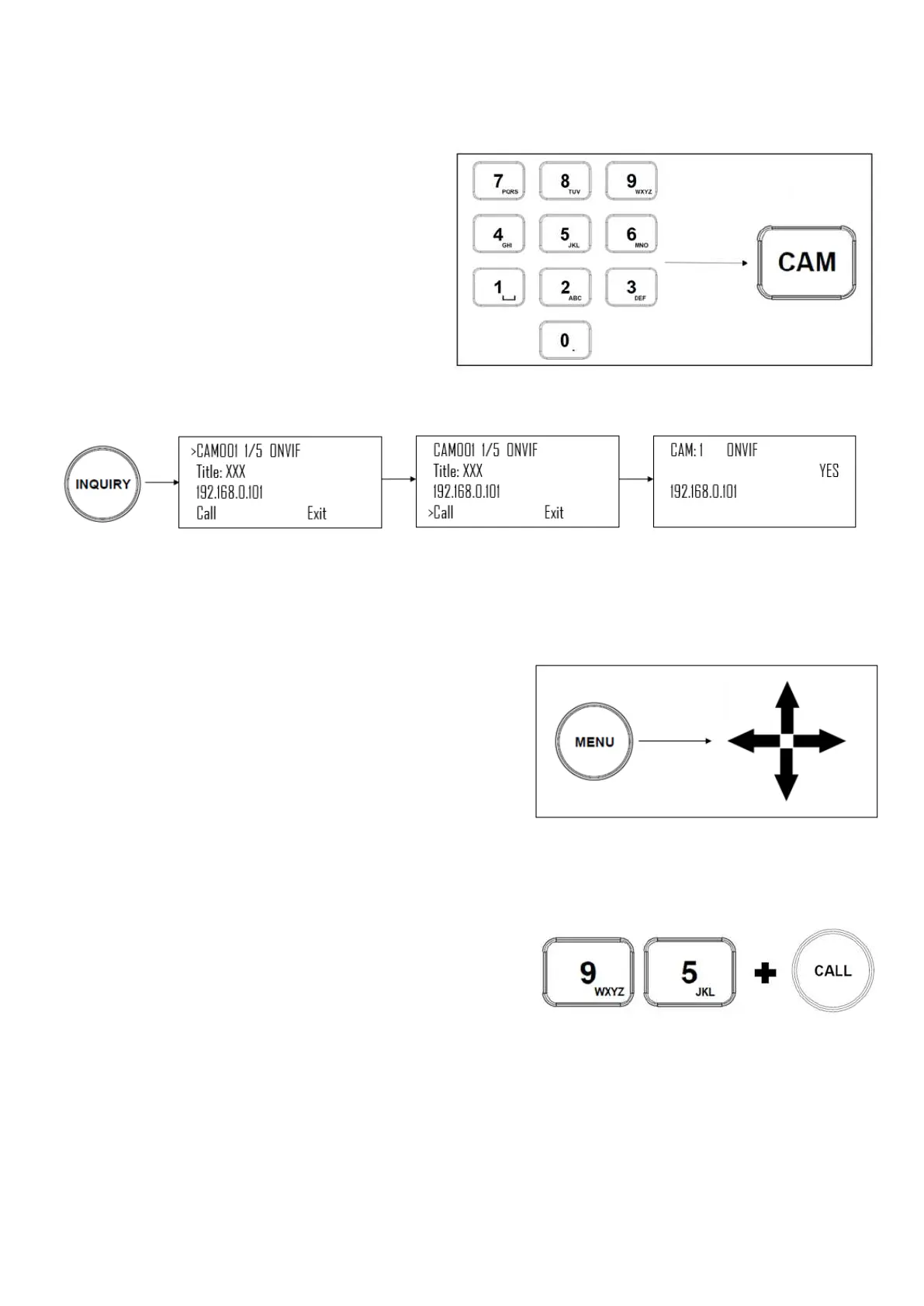 1. Use the keypad to call the camera by CAM ID