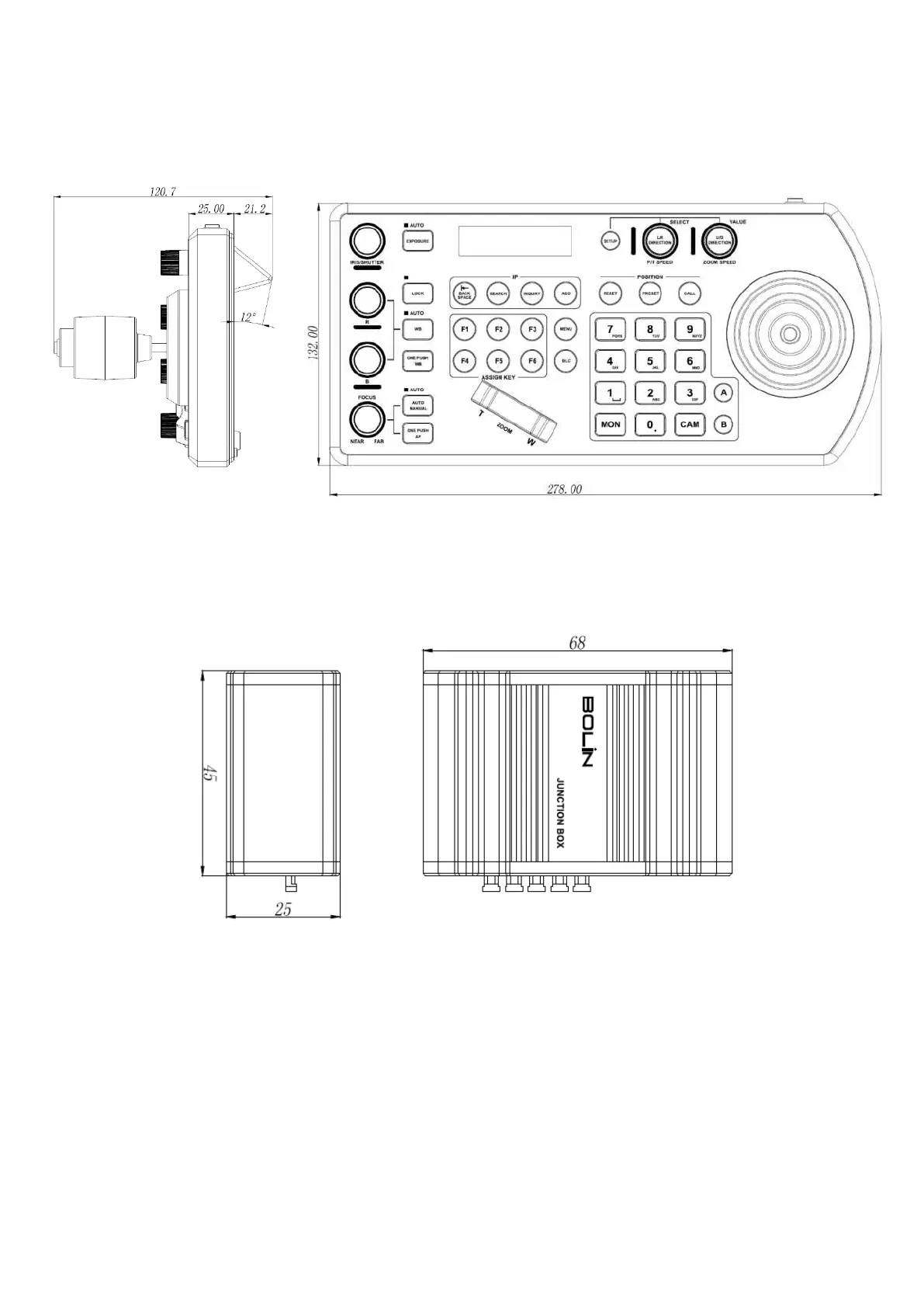 Bolin Technology KBD-1010-R - Dimensions; KBD-1010 Dimensions; Junction Box Dimensions