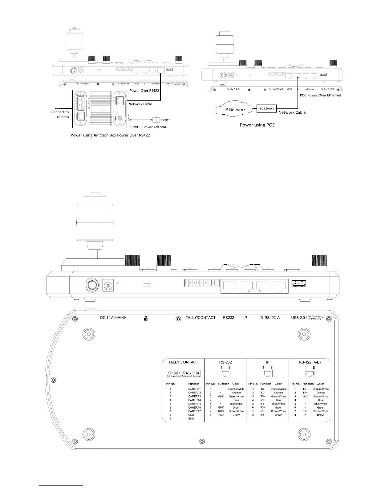 Figure 2 - Power supply is required at EITHER the keyboard OR the Junction Box. If the junction box is powered, no additional power supply is
