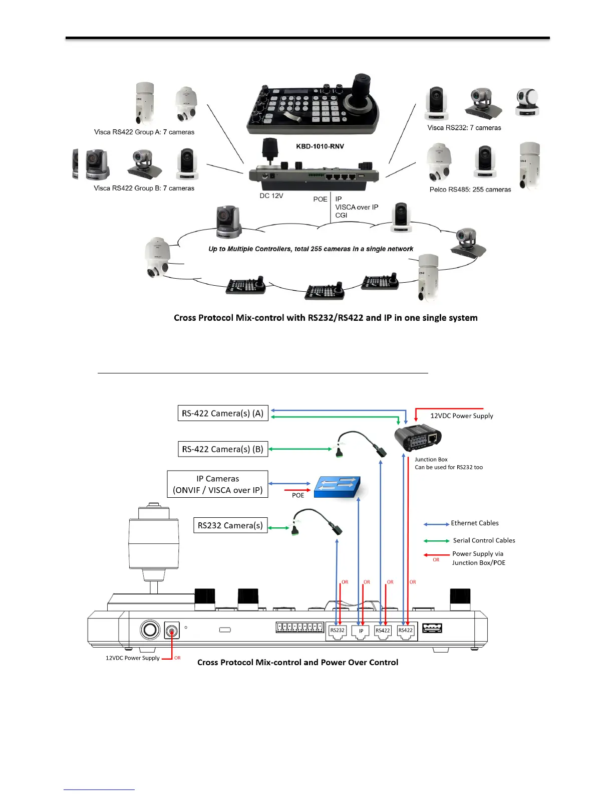 When controlling RS422 and RS232 cameras simultanneously, the keyboard can control a total of 7 RS232 and