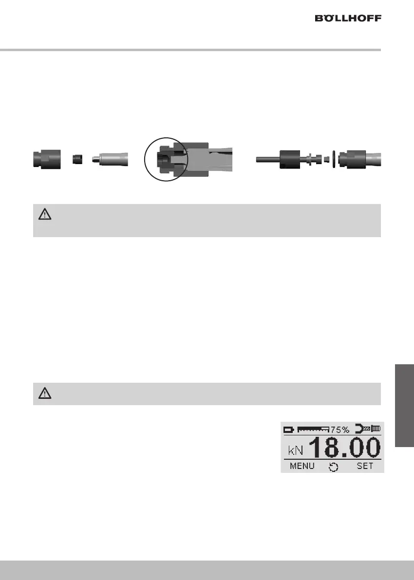 • Instalar las piezas (posición 1 y 3) sobre el pistón hidráulico