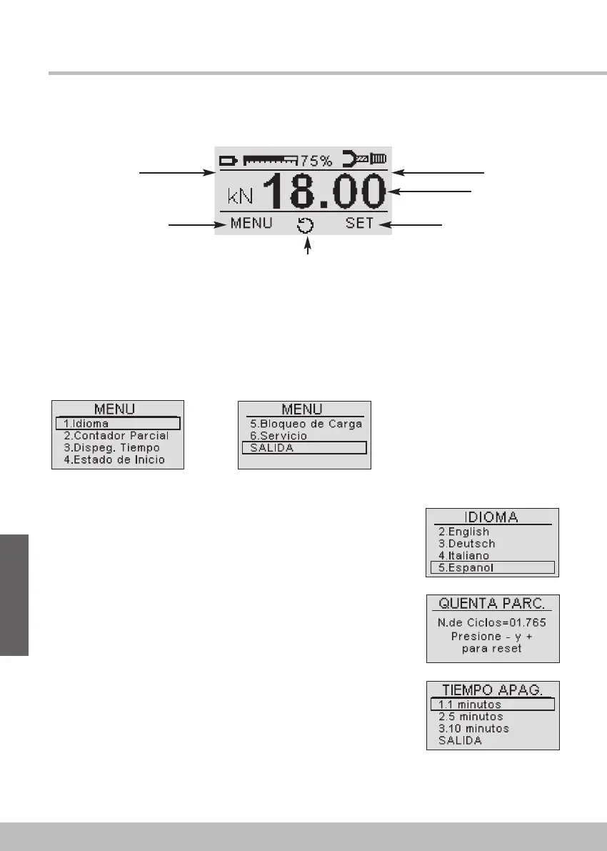 Presionar el botón IZQUIERDO (MENU, Menú) durante 2 segundos para acceder al menú de