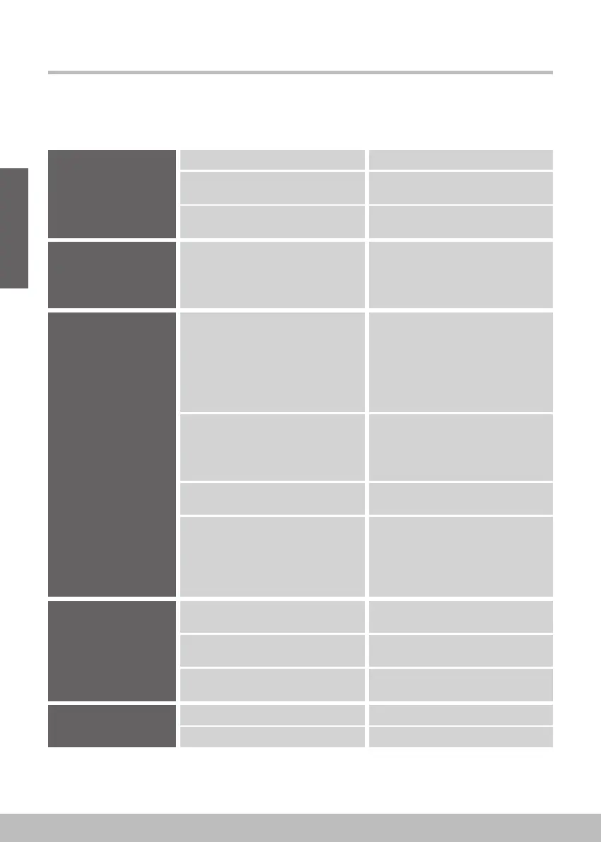 Possible causes Solution