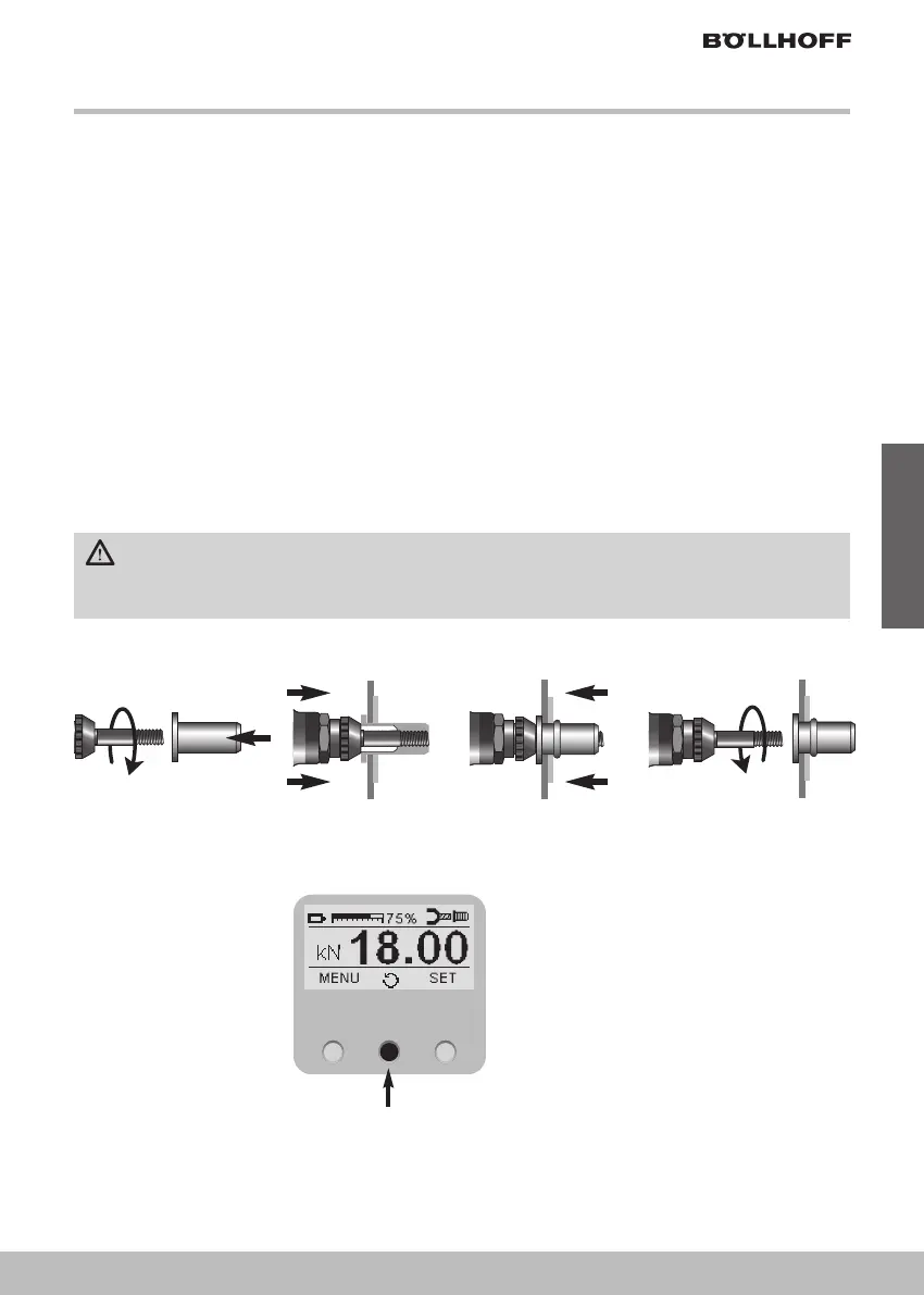 • Betätigen Sie den Betätigungsschalter und halten ihn gedrückt, bis der Gewindedorn vollständig