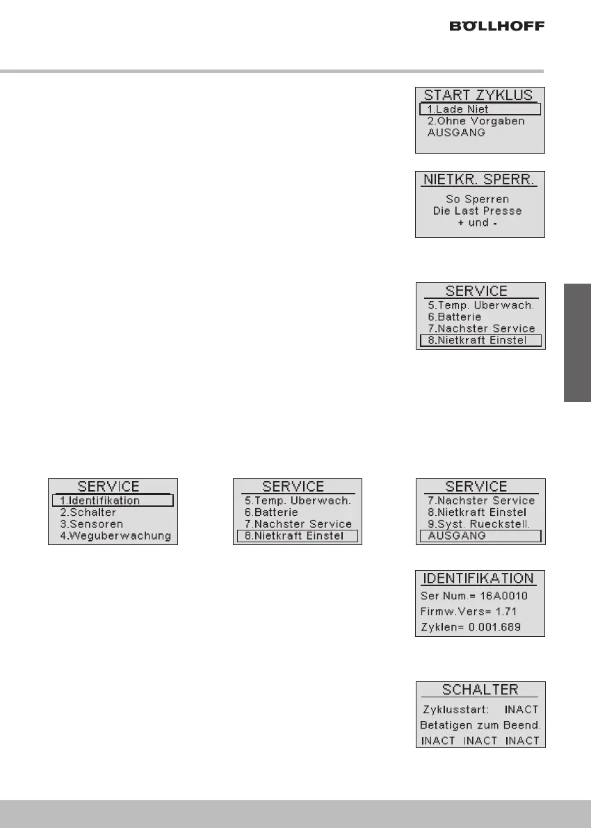 nicht mehr zum Bildschirm zur Setzkrafteinstellung gelangen, um die