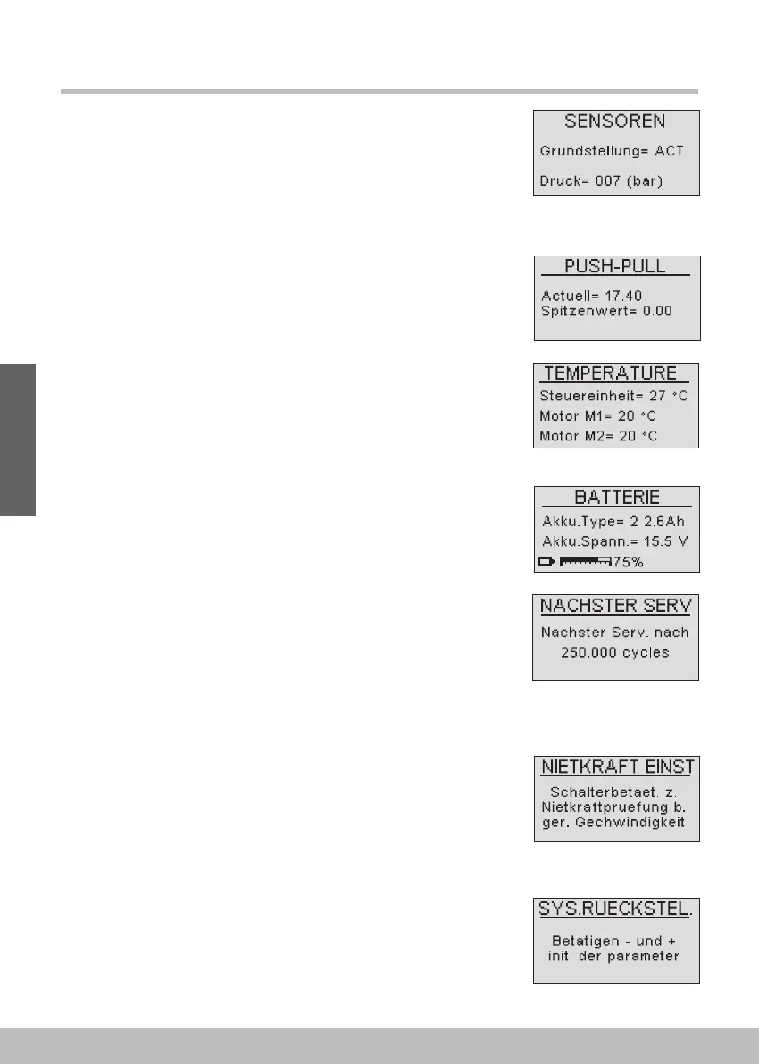 des Drucksensors angezeigt. Der Ruhesensor prüft die Position des