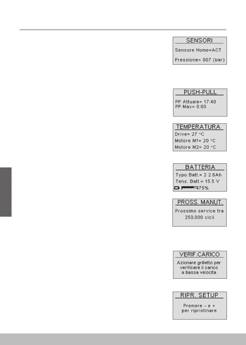 Visualizza lo stato del sensore di "Reset" e il sensore di pressione.