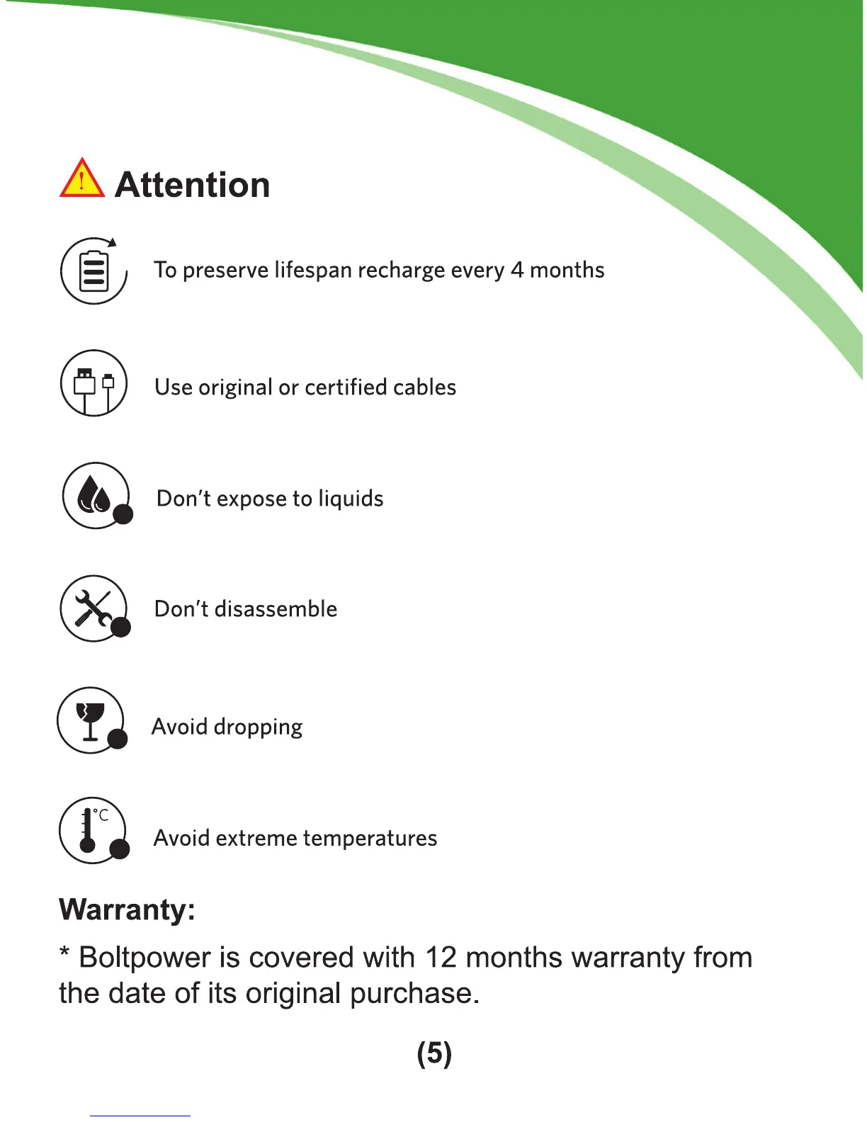 Bolt Power D28 - Important Information and Warranty; Usage Precautions; Product Warranty