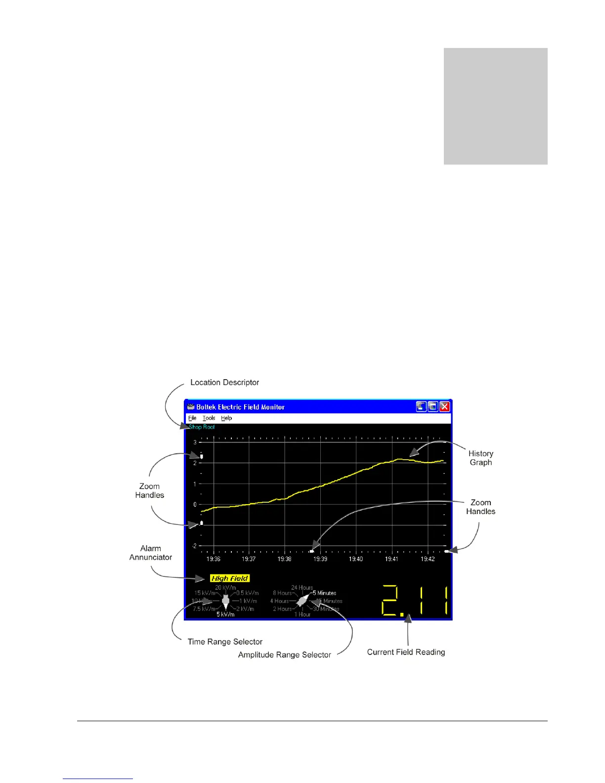 To start the EFM-100 display software select: Start...All Programs...Boltek…EFM-100 Electric Field