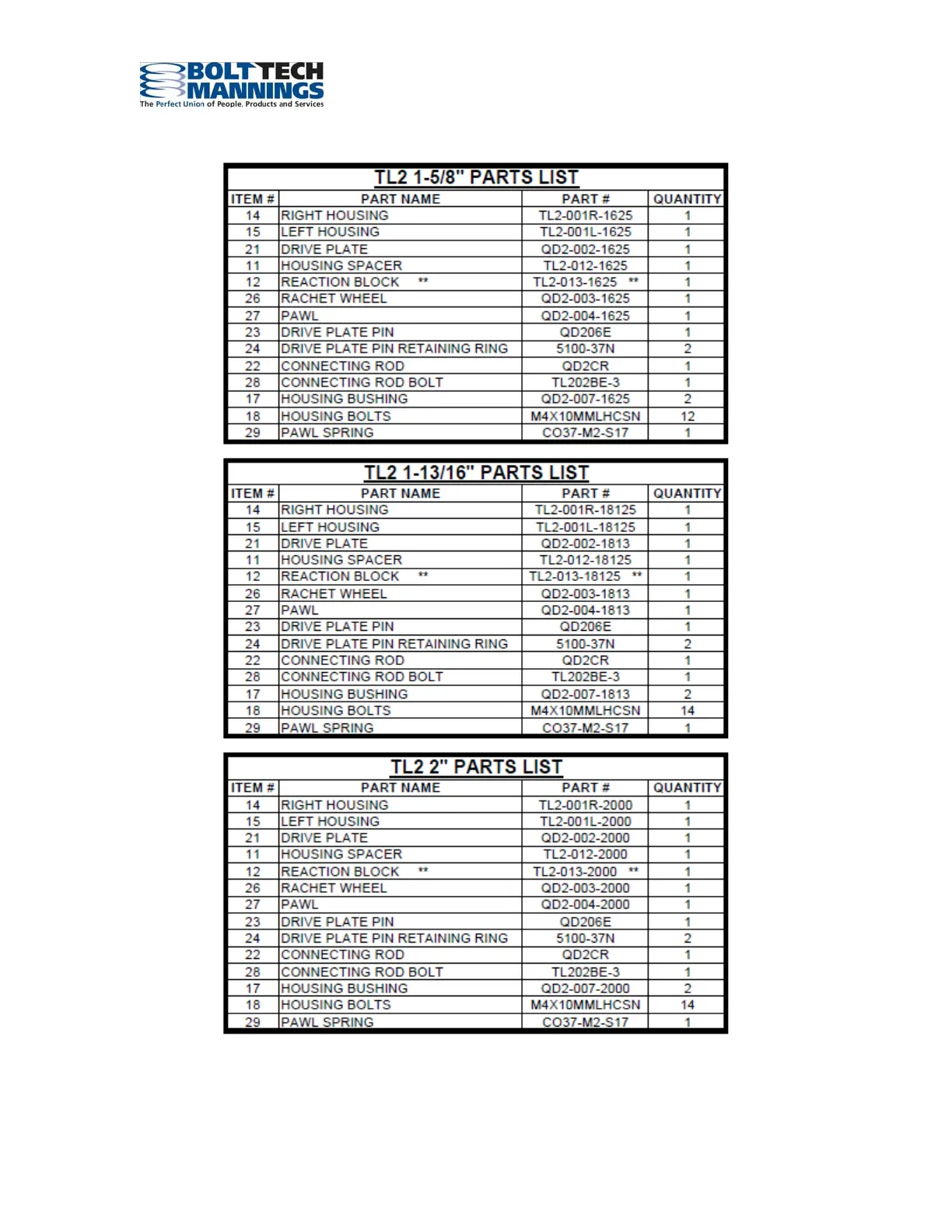 **Reaction Block** (S) at the end of the part number indicates a steel reaction