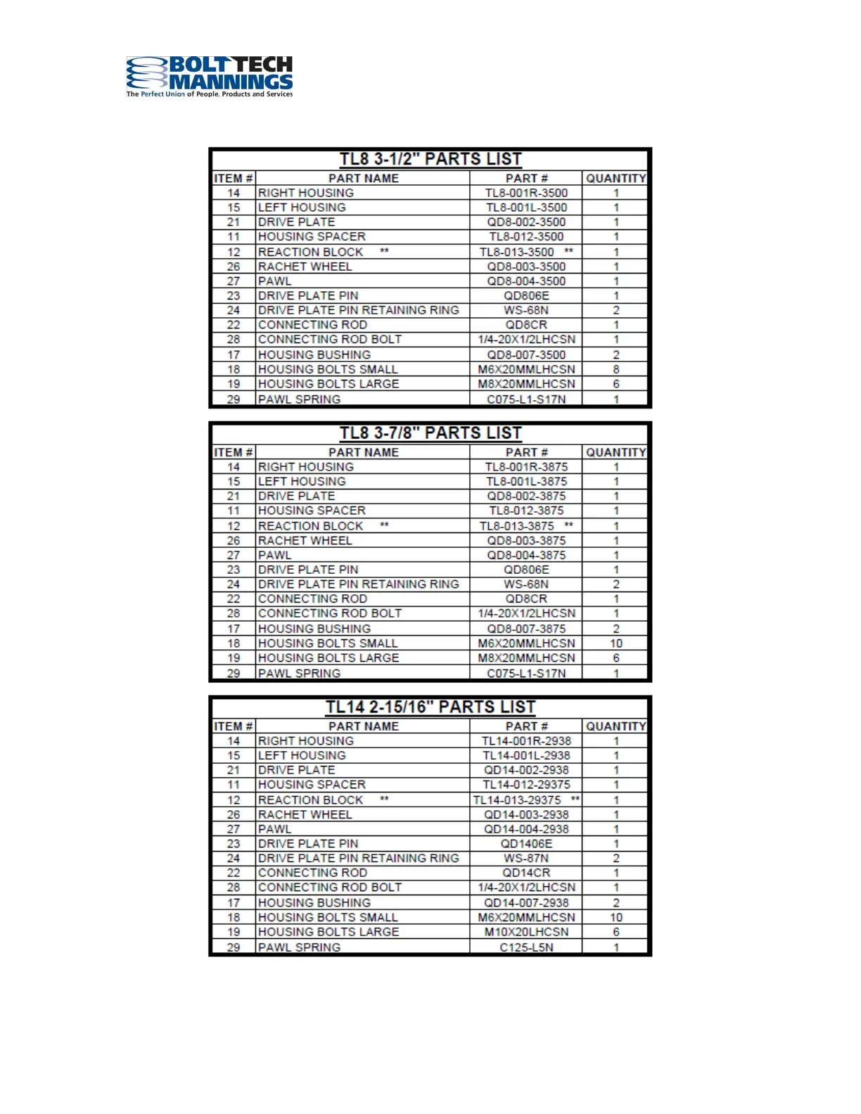 **Reaction Block** (S) at the end of the part number indicates a steel reaction