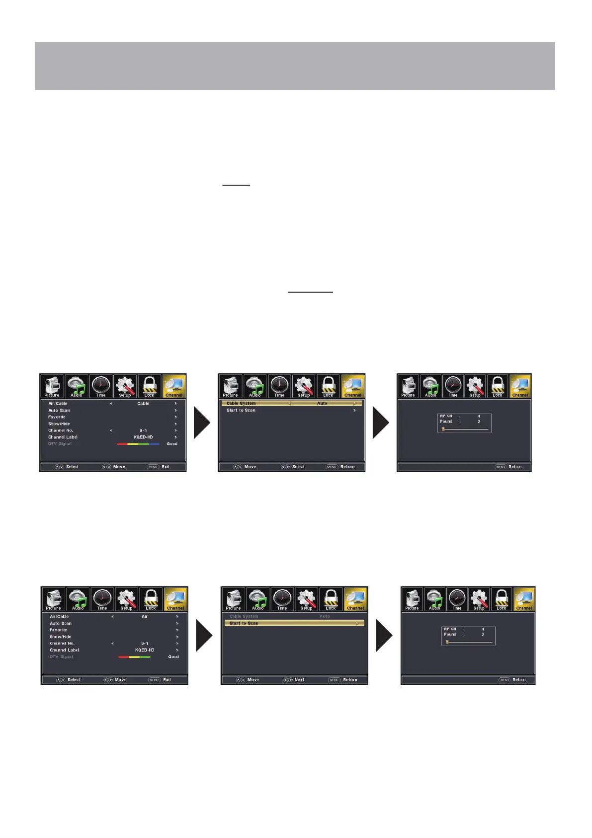 NOTE: Channel Auto Scan may take several minutes to complete.