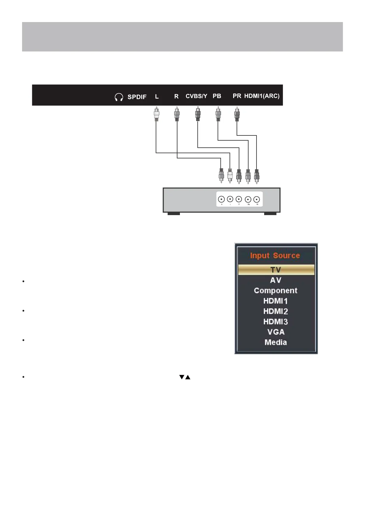 equipment to the Component Y Pb Pr input on the TV’s panel.