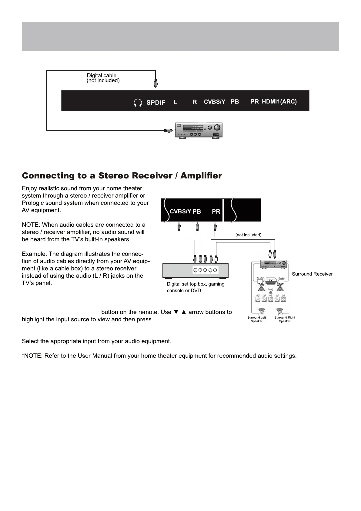 Bolva 43BF20 - Connection to a Home Theater System